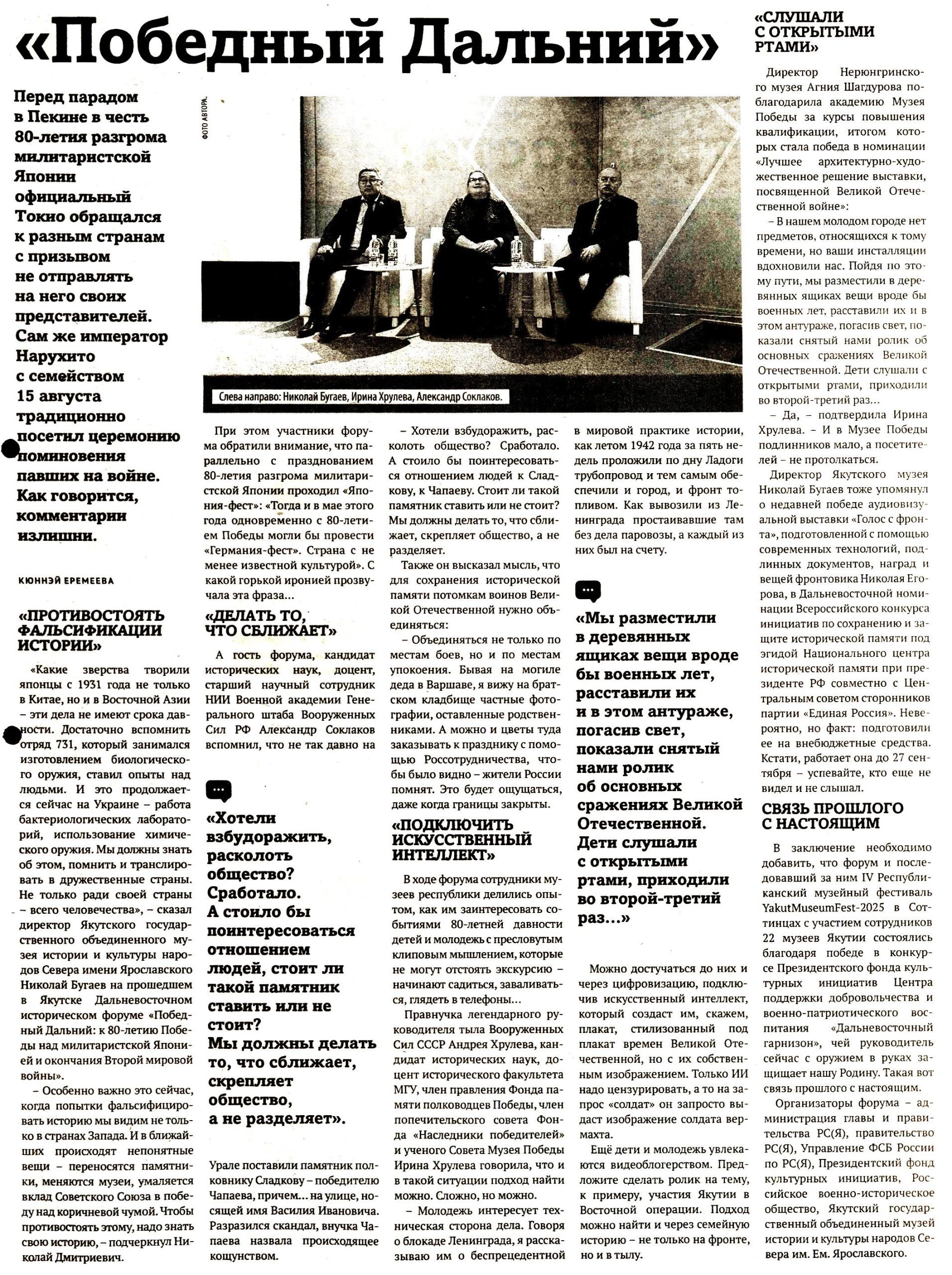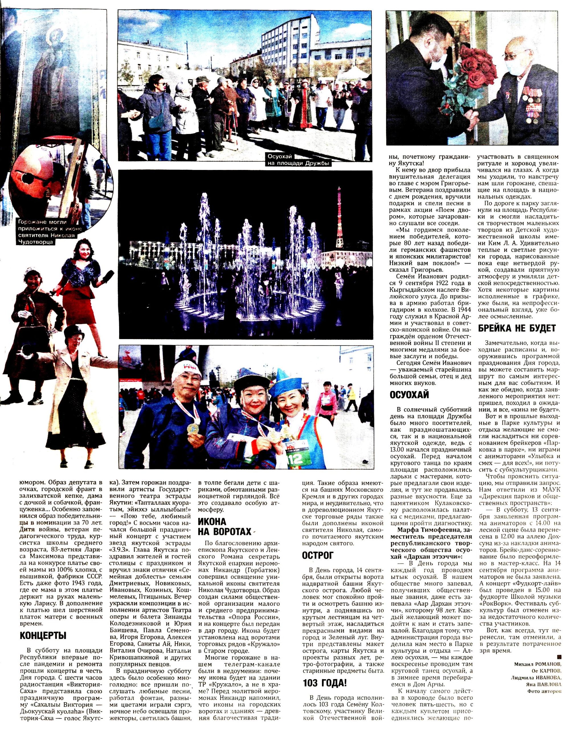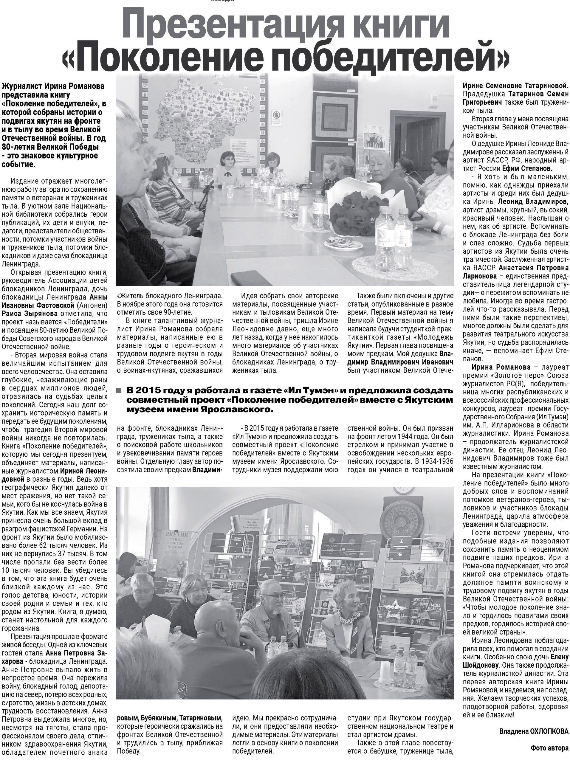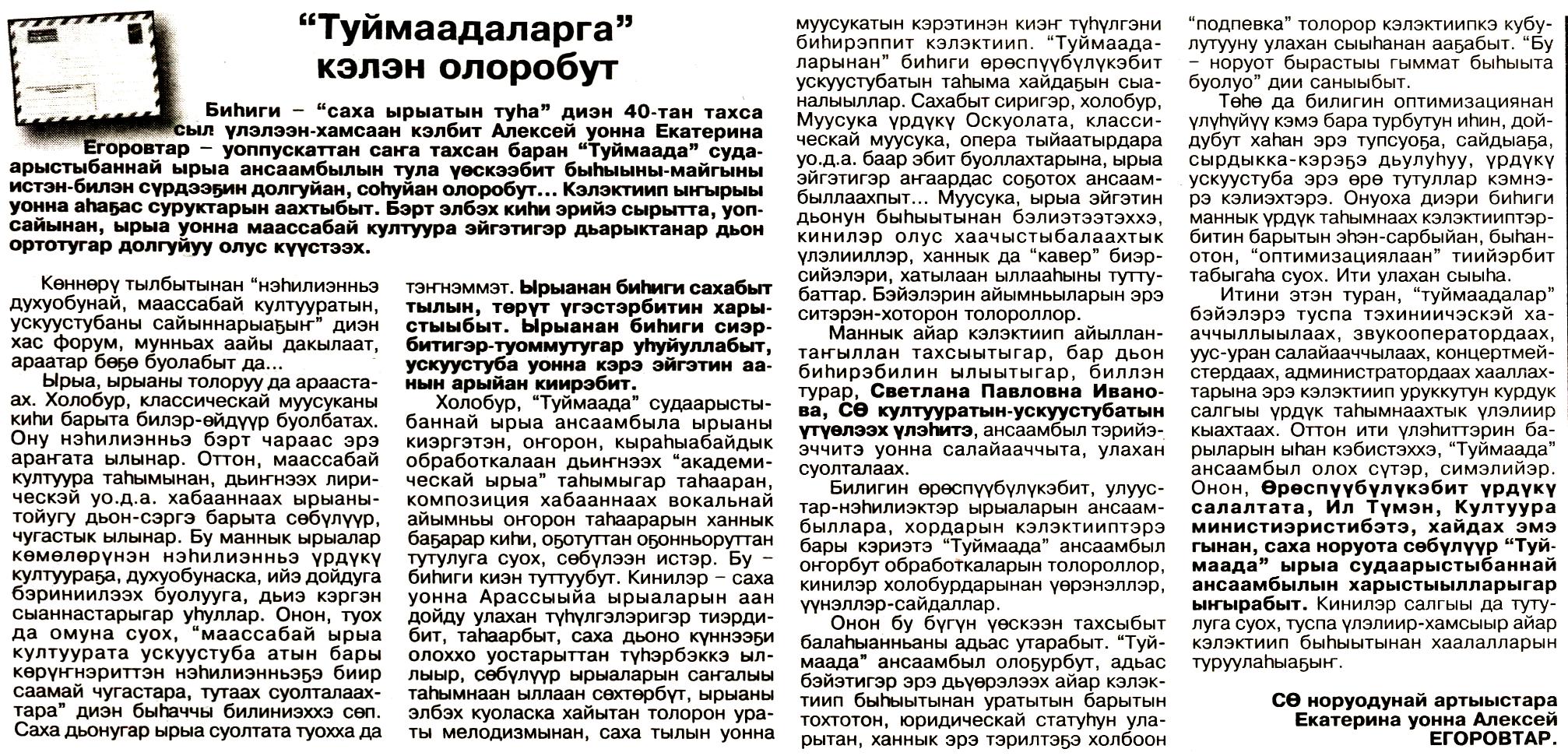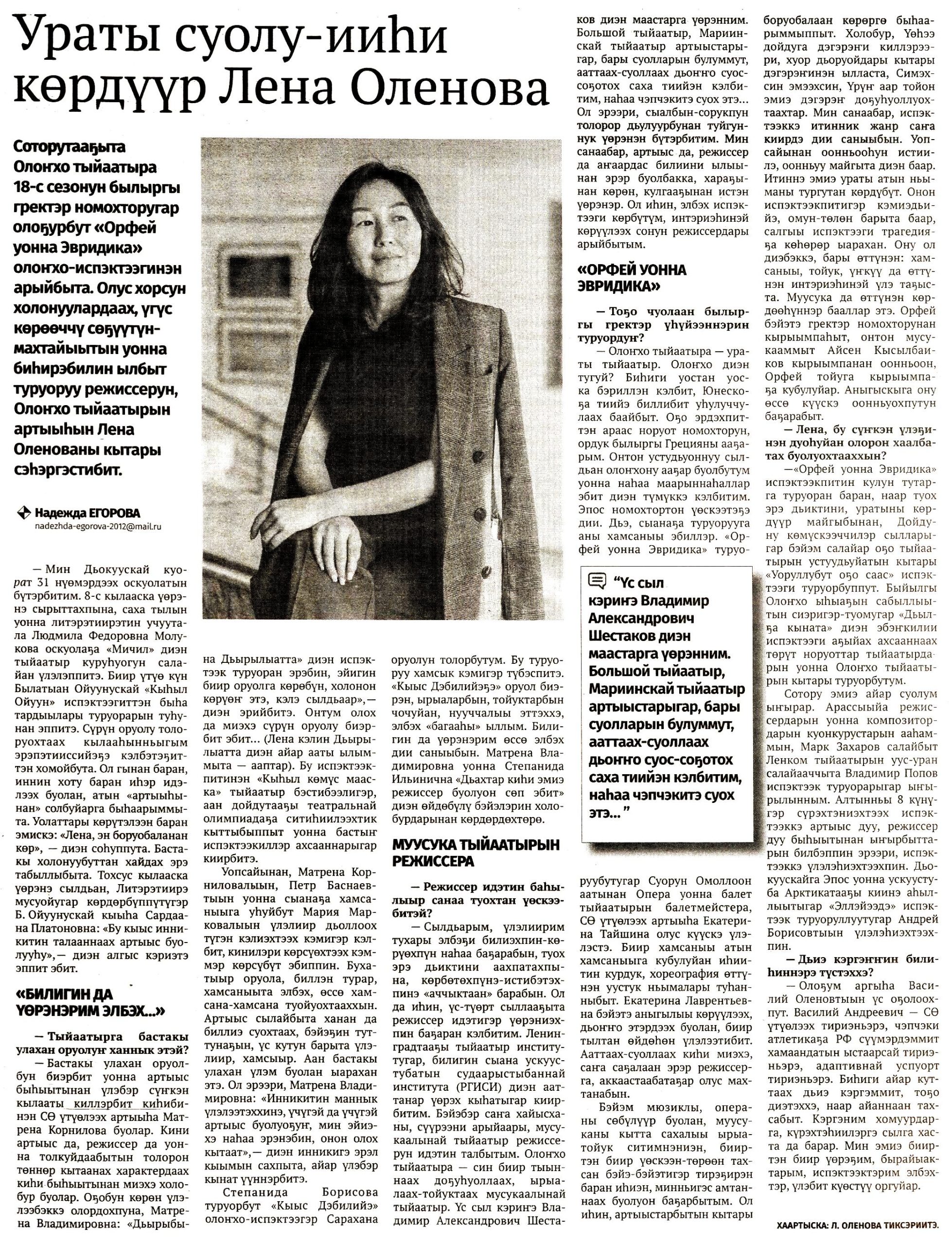 Гид электронных СМИ г. Якутска сформирован на основе мониторинга новостей культуры за неделю. Источники: ysia.ru, news.ykt.ru, yk24.ru, sakhalife.ru, yakutia.info, aartyk.ru и др.