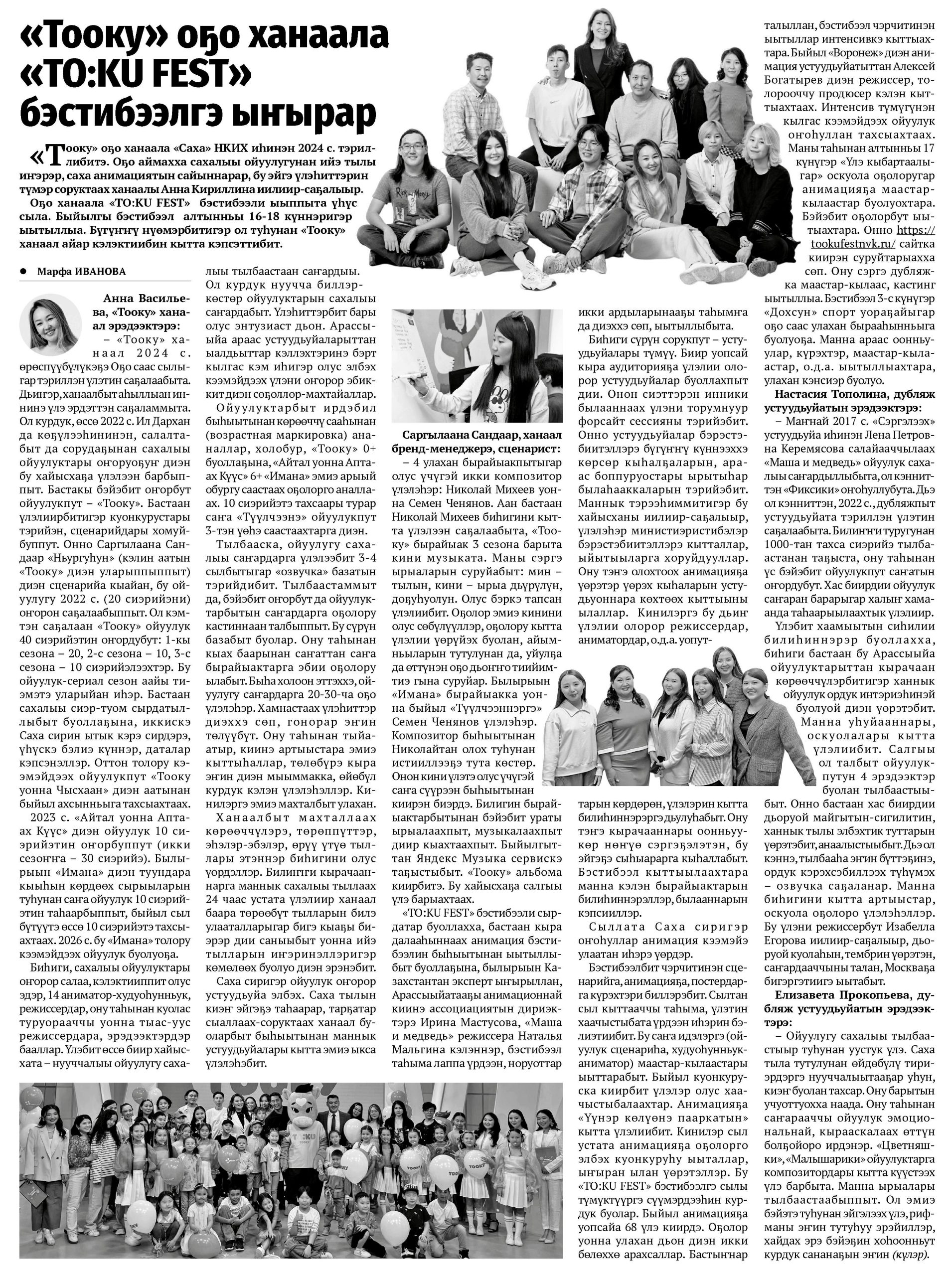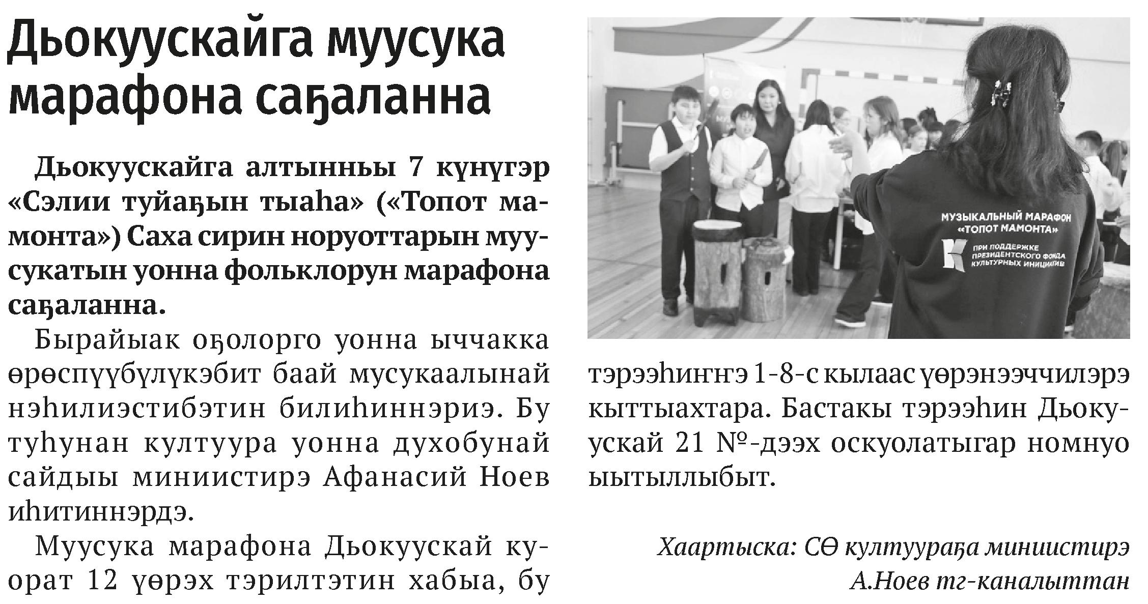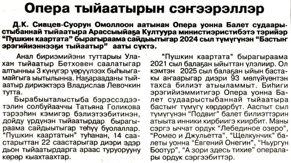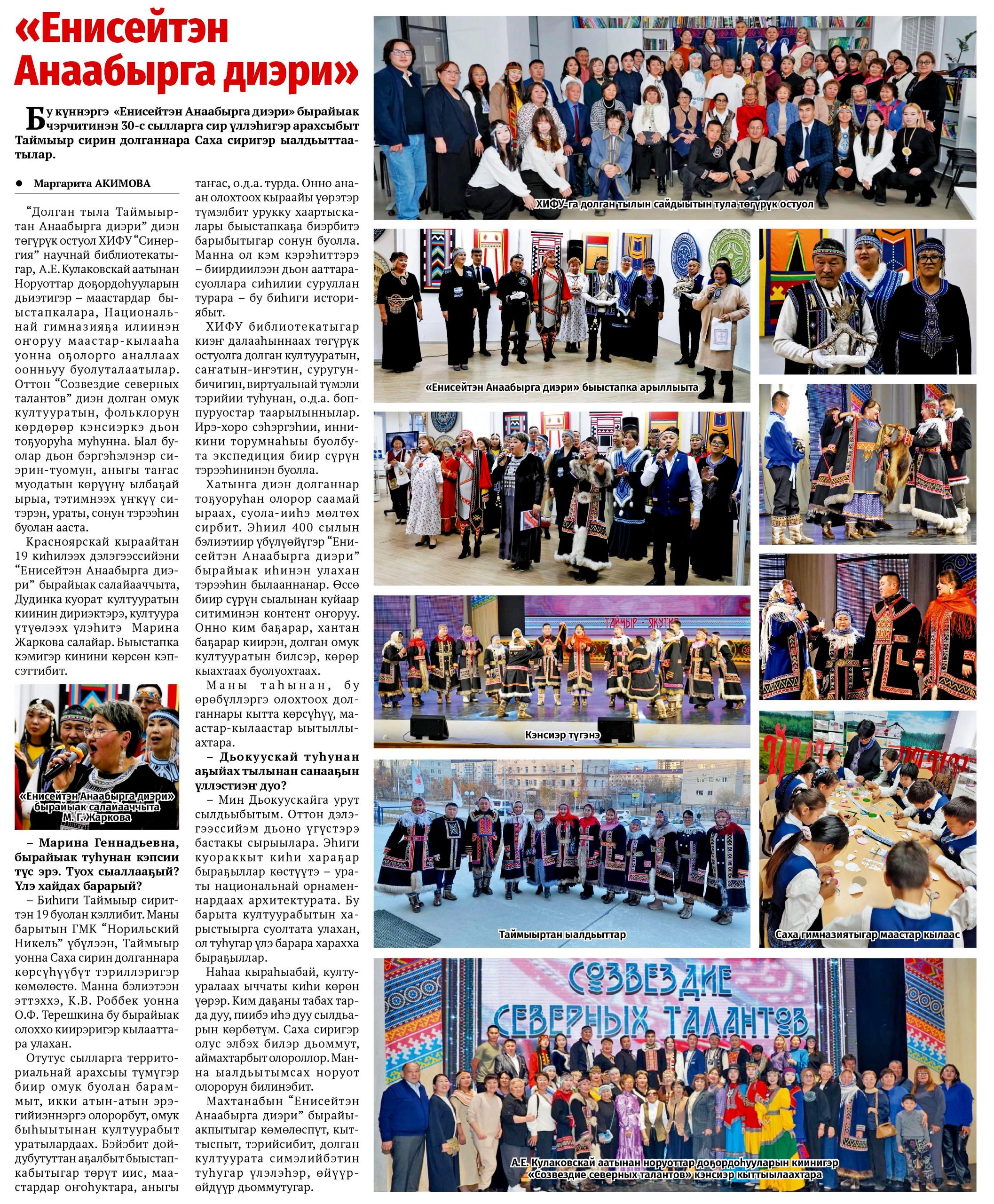 Гид электронных СМИ г. Якутска сформирован на основе мониторинга новостей культуры за неделю. Источники: ysia.ru, news.ykt.ru, yk24.ru, sakhalife.ru, yakutia.info, aartyk.ru и др.