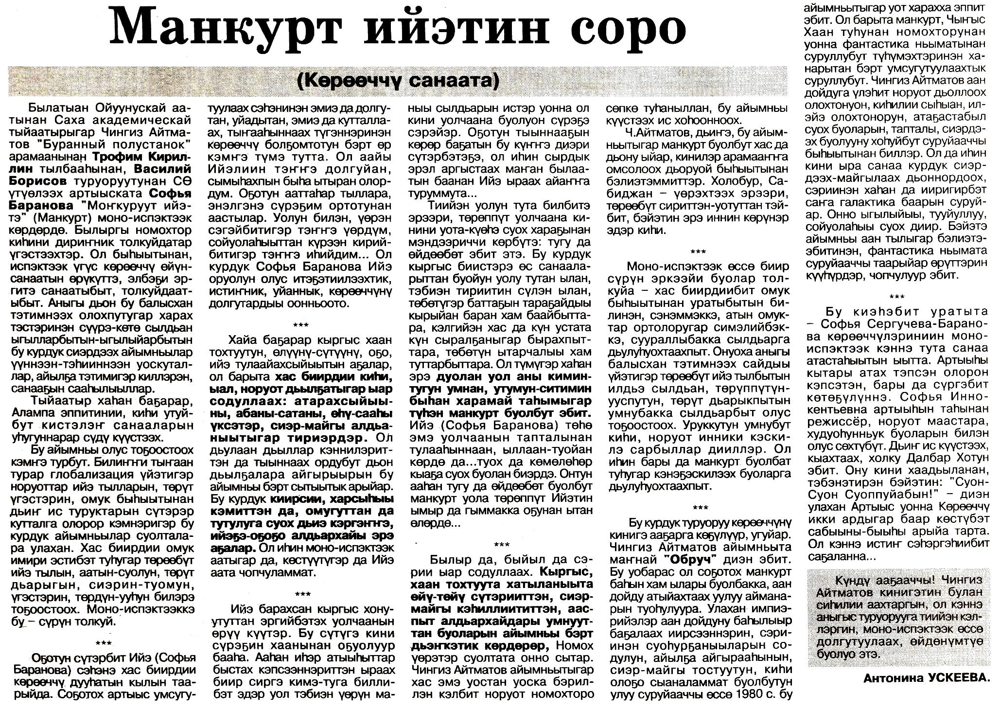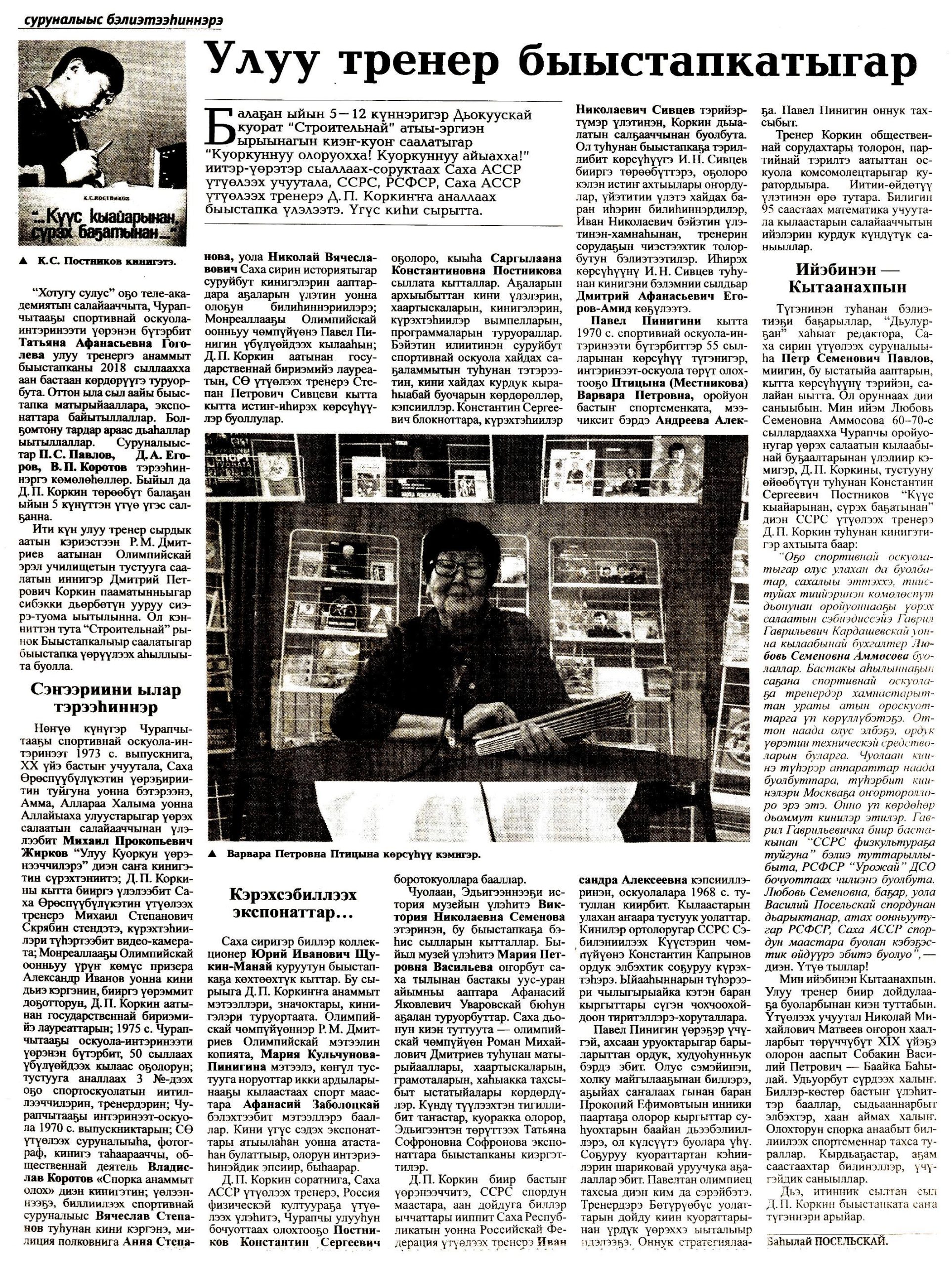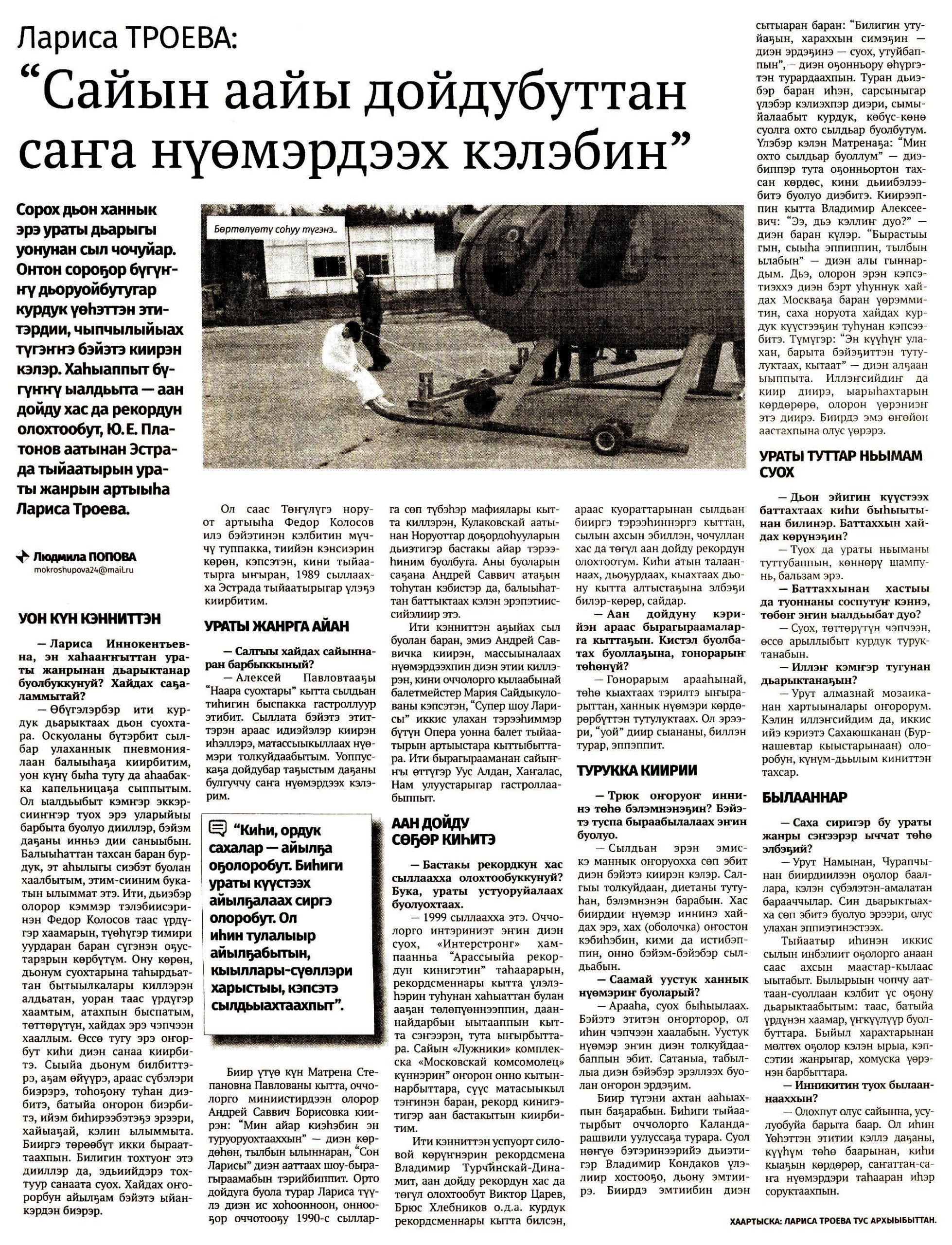 Гид электронных СМИ г. Якутска сформирован на основе мониторинга новостей культуры за неделю. Источники: ysia.ru, news.ykt.ru, yk24.ru, sakhalife.ru, yakutia.info, aartyk.ru и др.