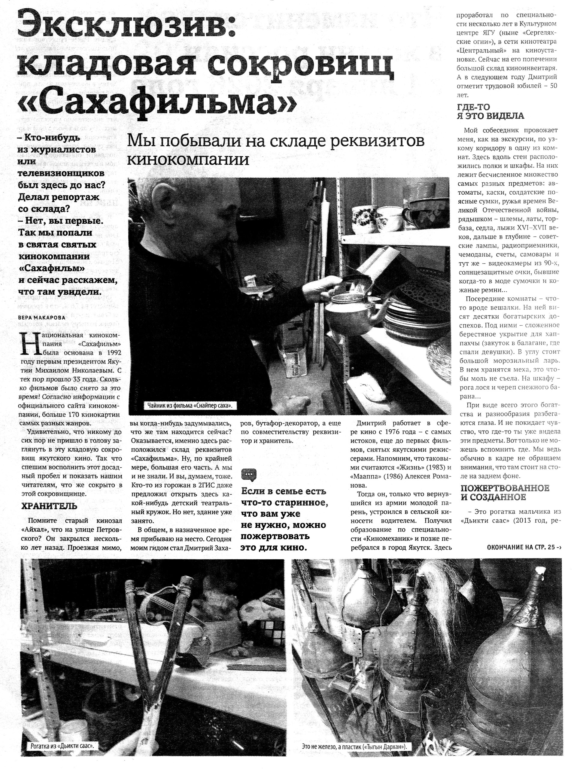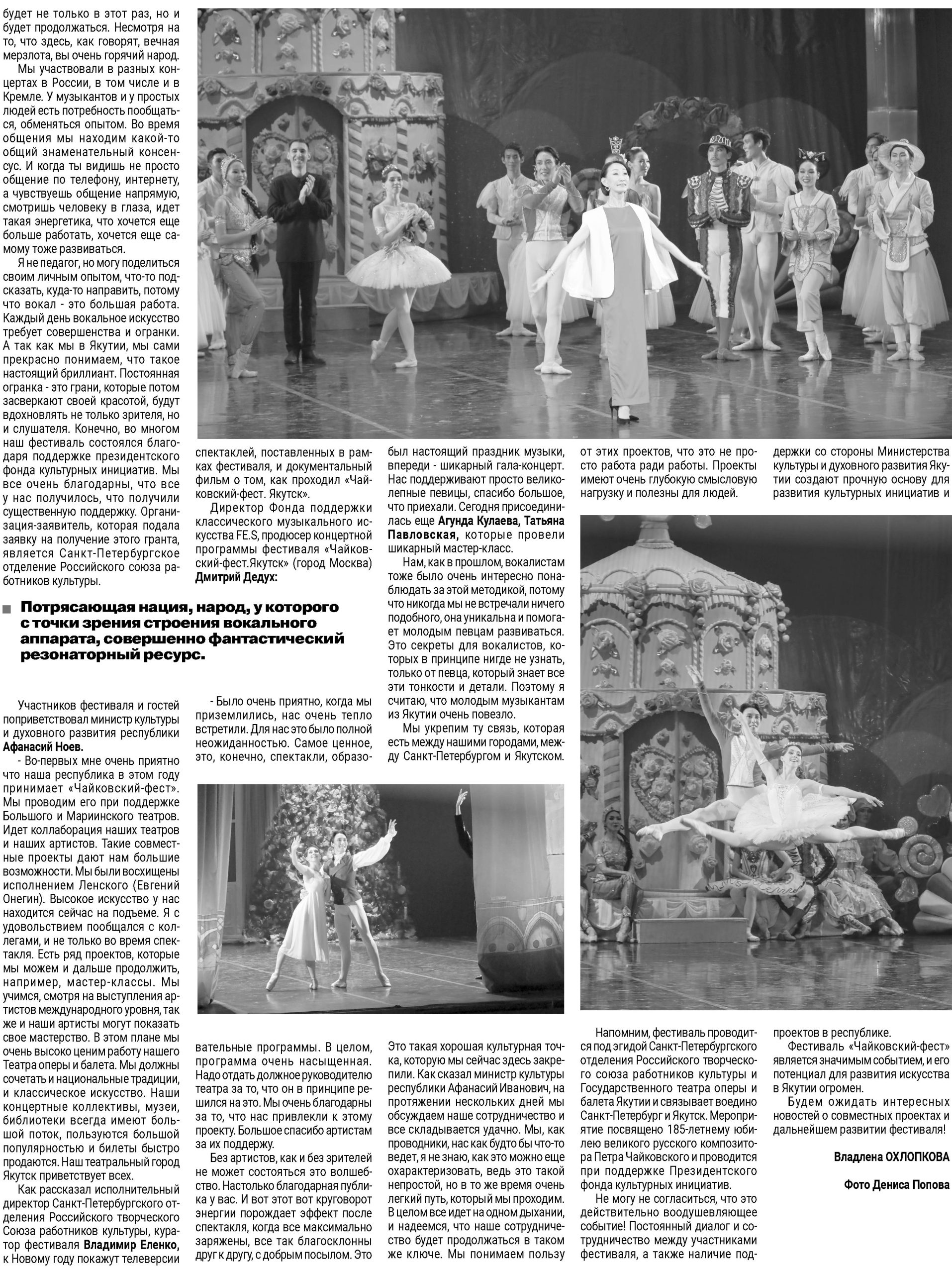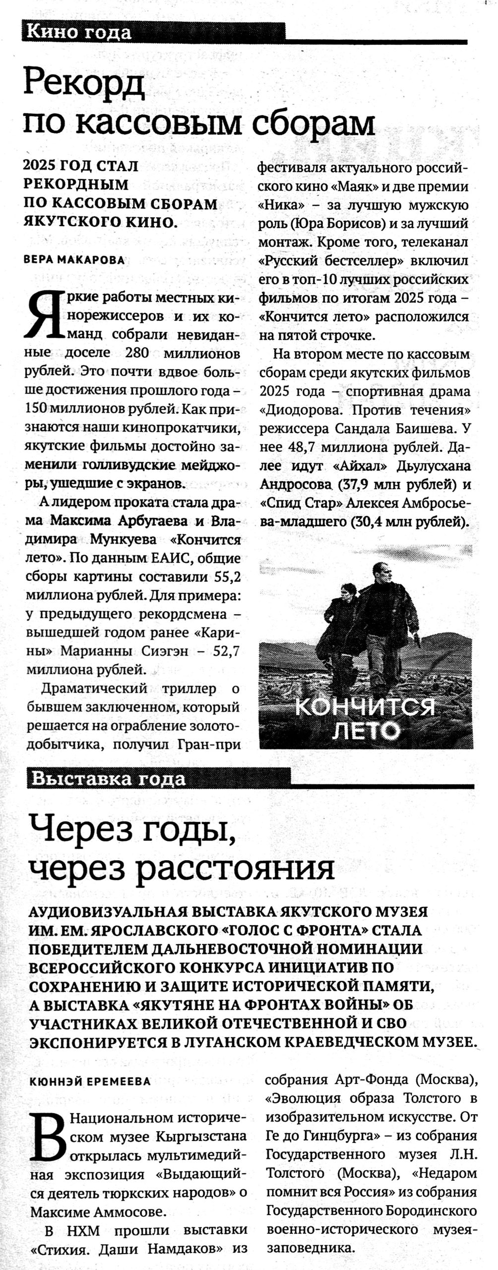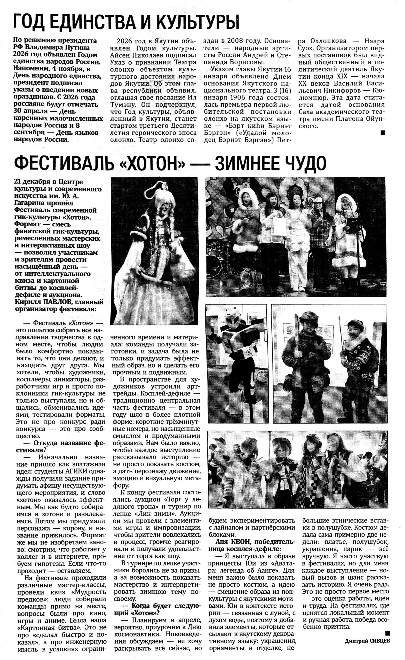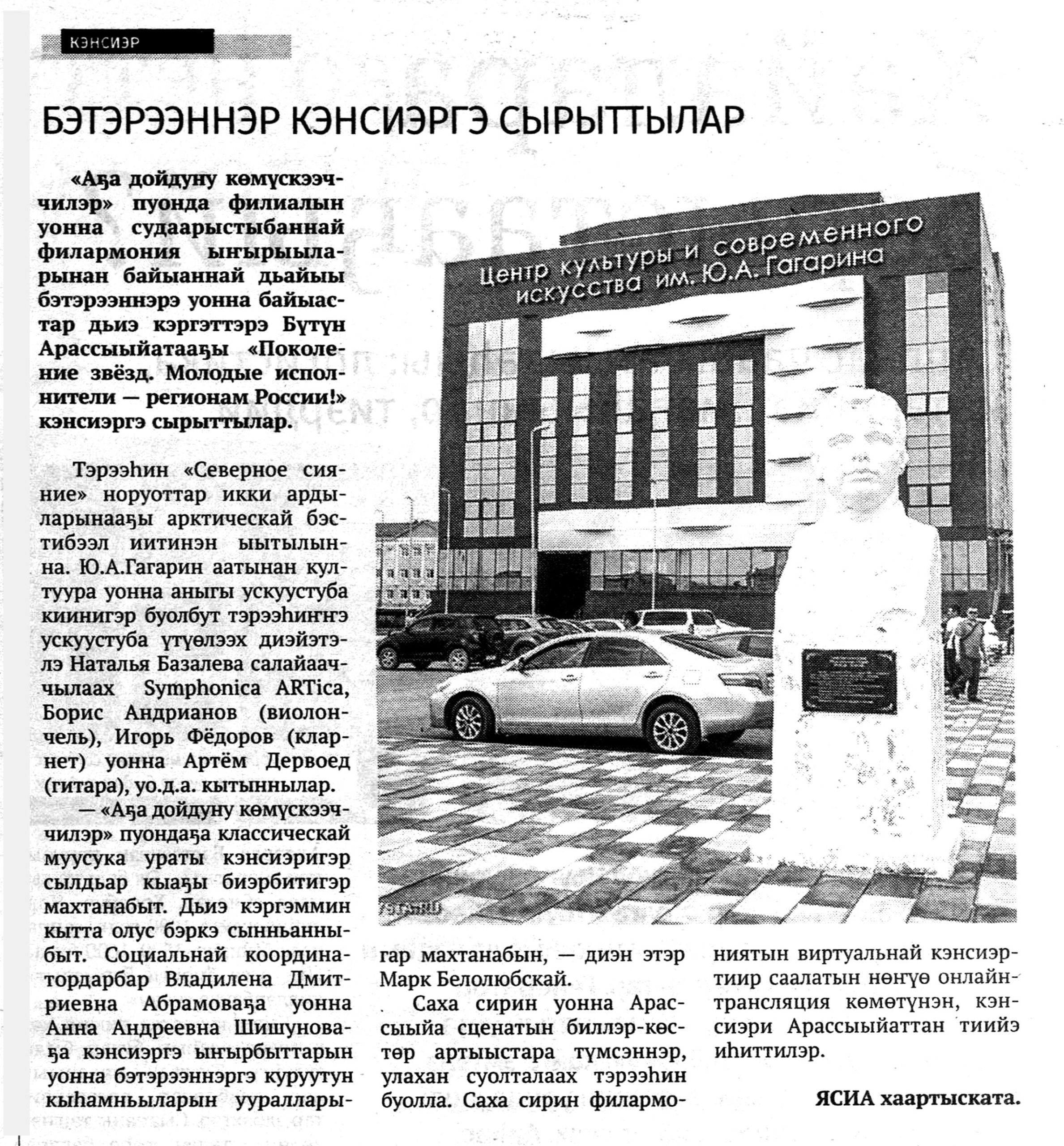 Гид электронных СМИ г. Якутска сформирован на основе мониторинга новостей культуры за неделю. Источники: ysia.ru, news.ykt.ru, yk24.ru, sakhalife.ru, yakutia.info, aartyk.ru и др.