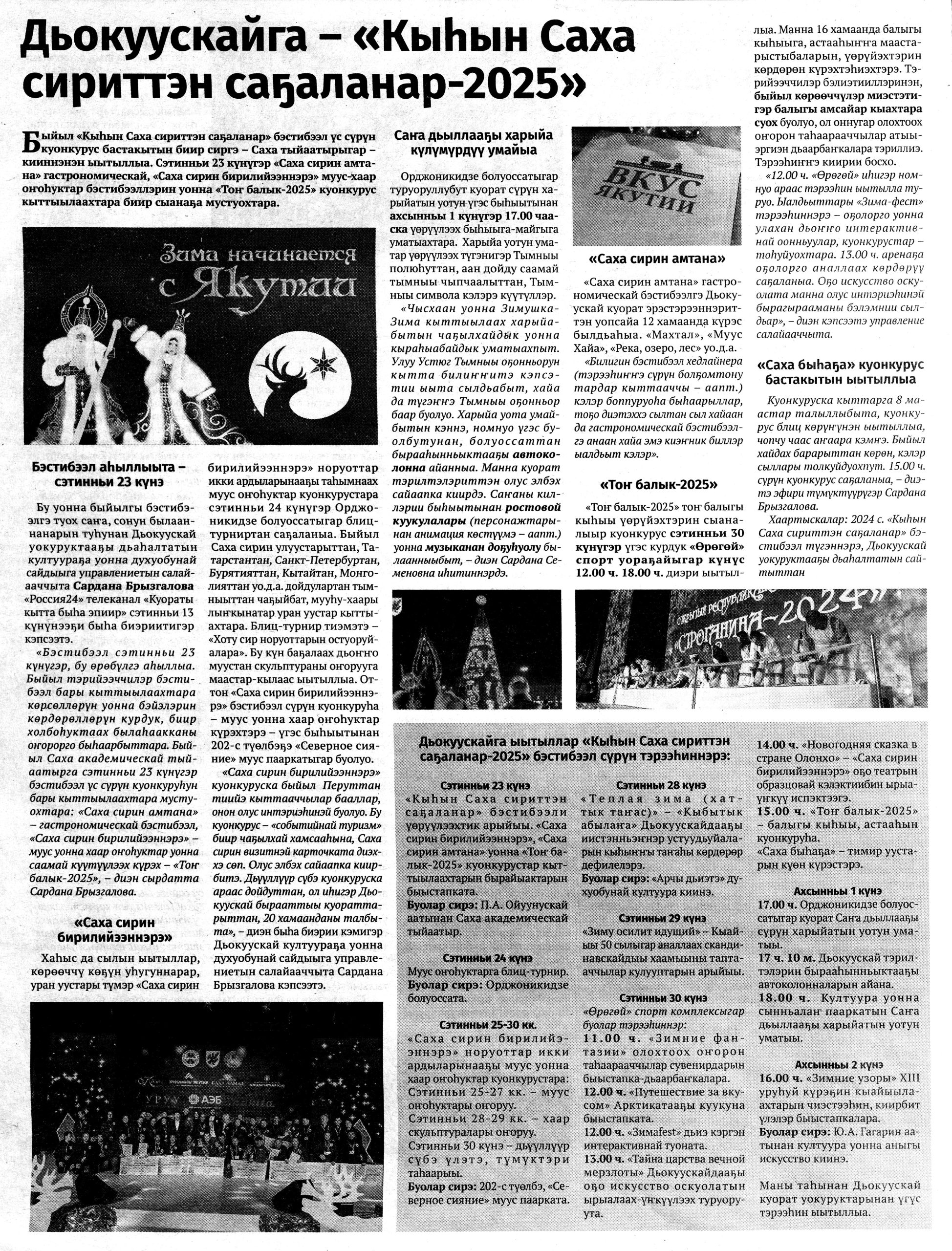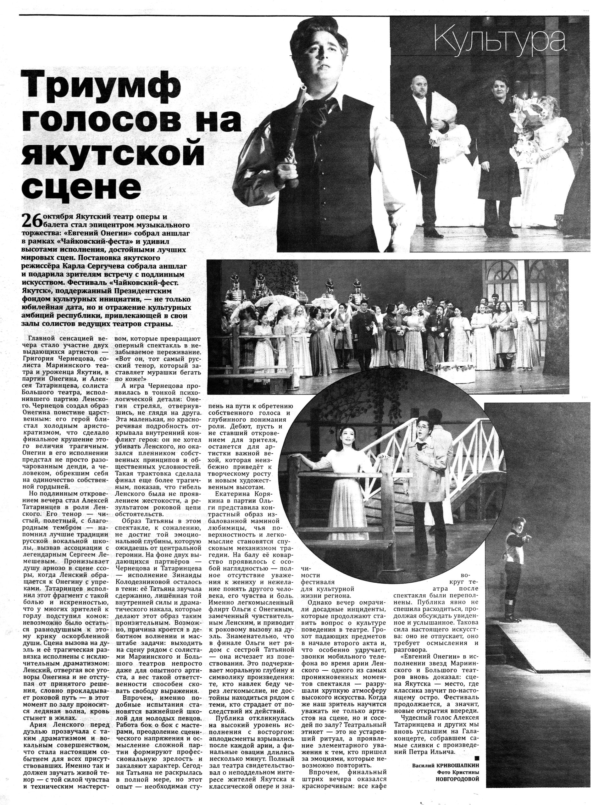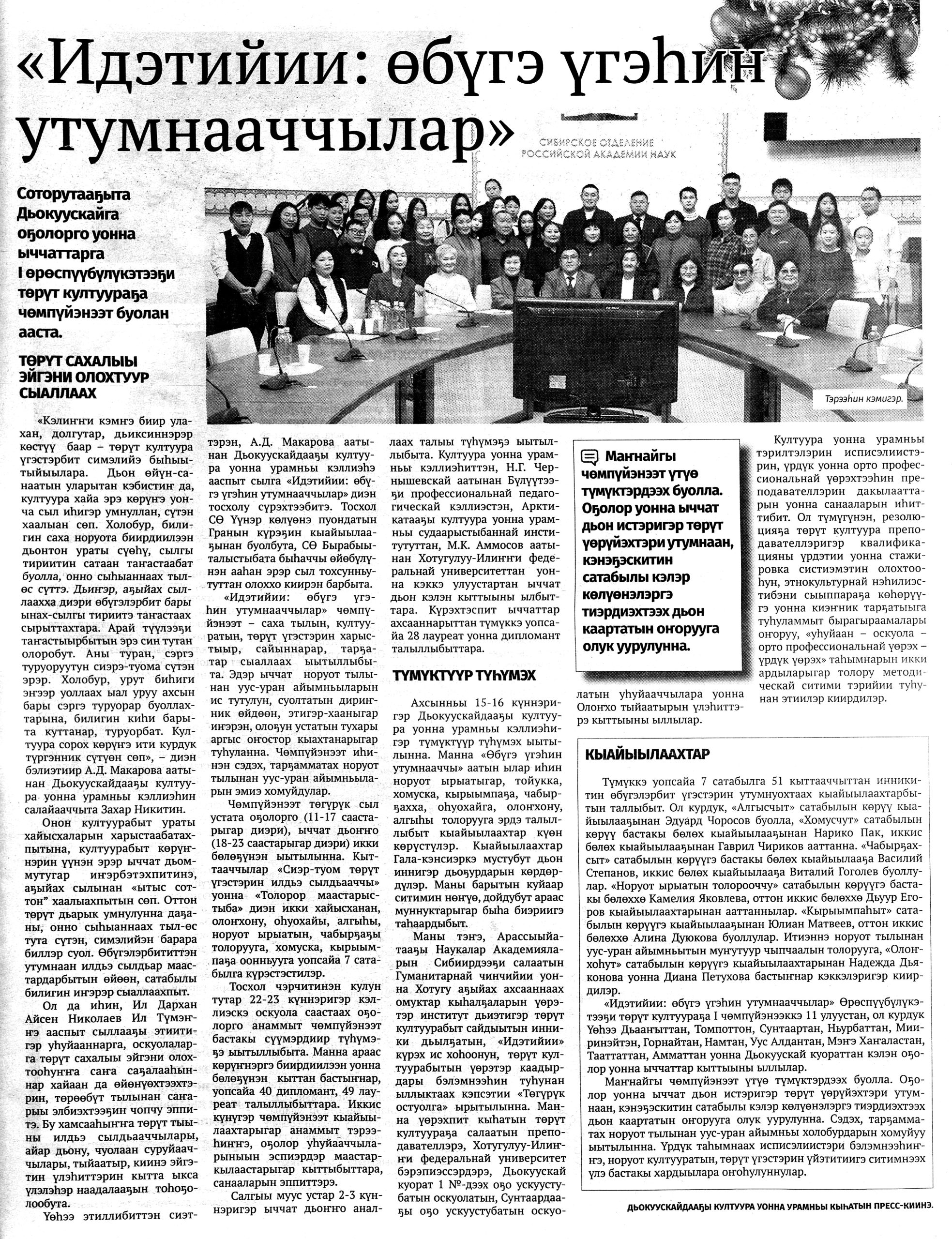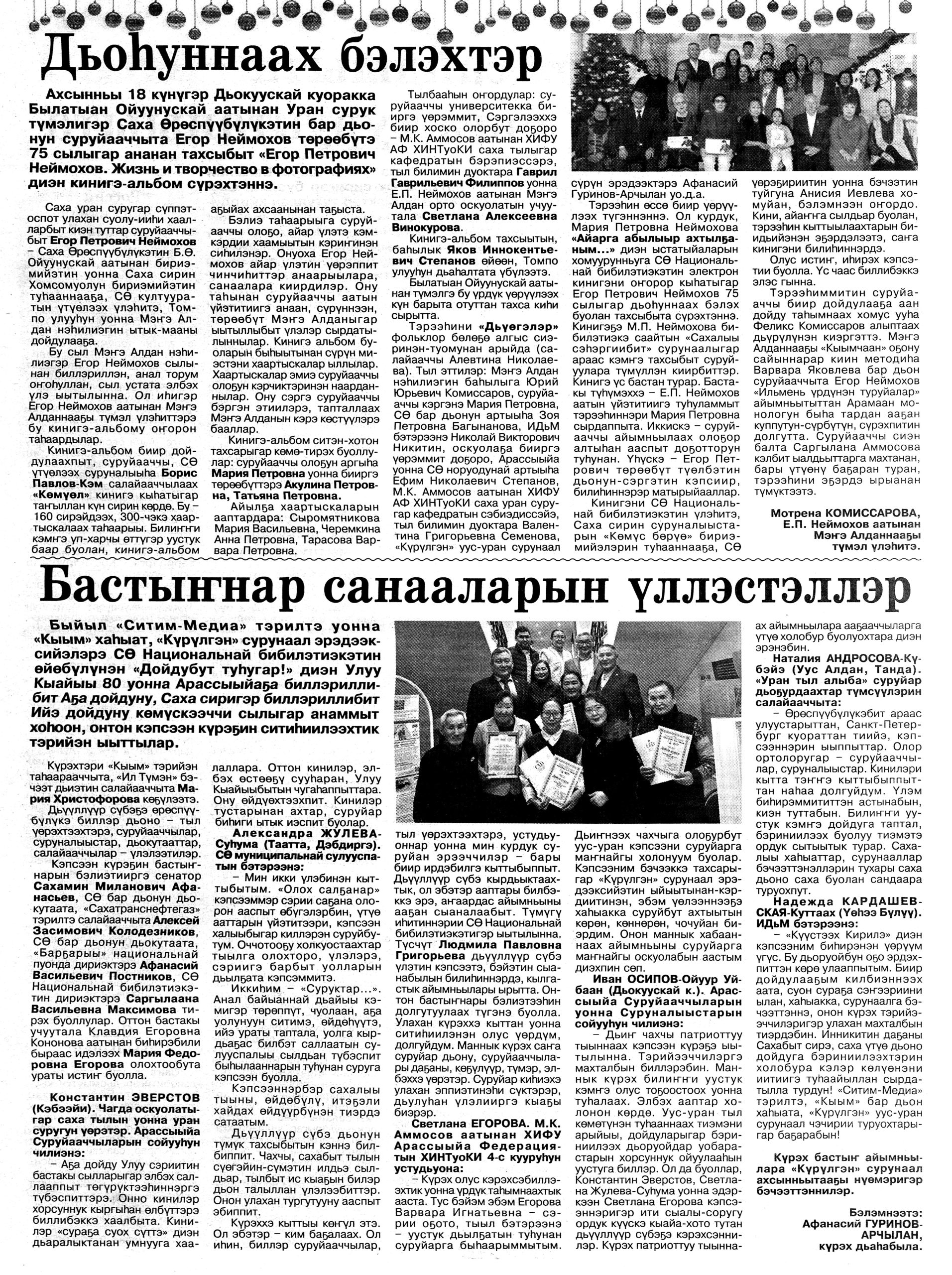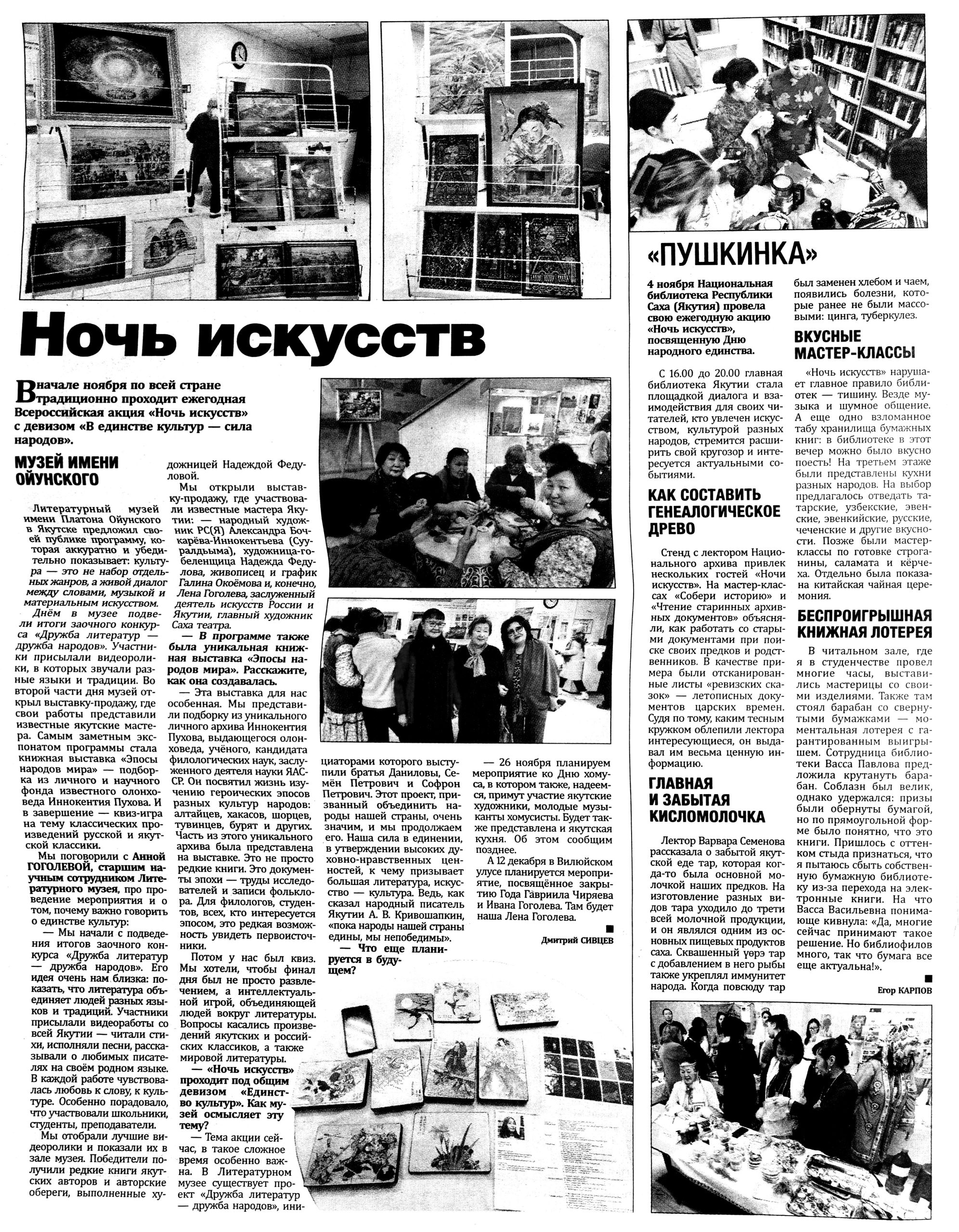 Гид электронных СМИ г. Якутска сформирован на основе мониторинга новостей культуры за неделю. Источники: ysia.ru, news.ykt.ru, yk24.ru, sakhalife.ru, yakutia.info, aartyk.ru и др.