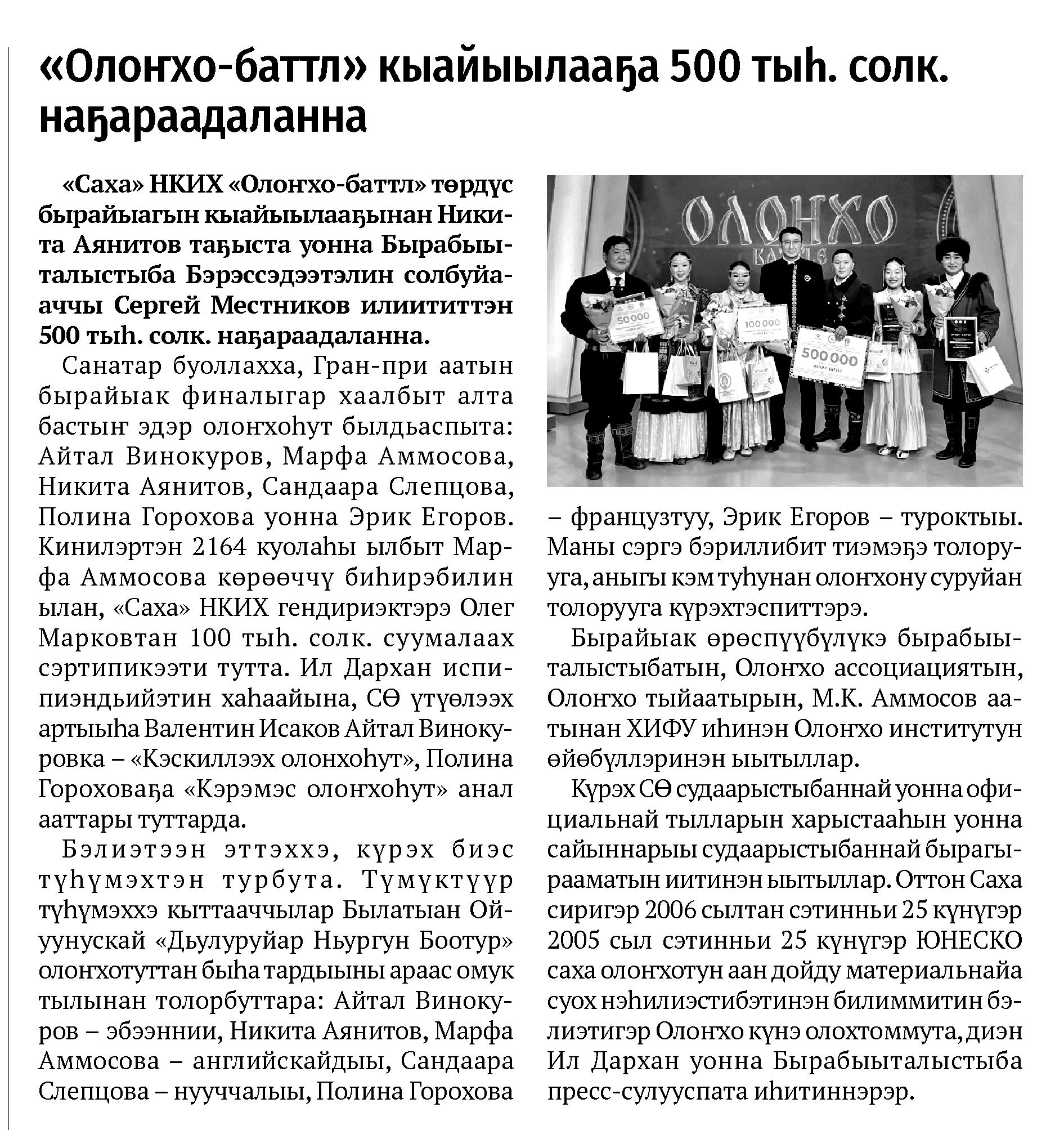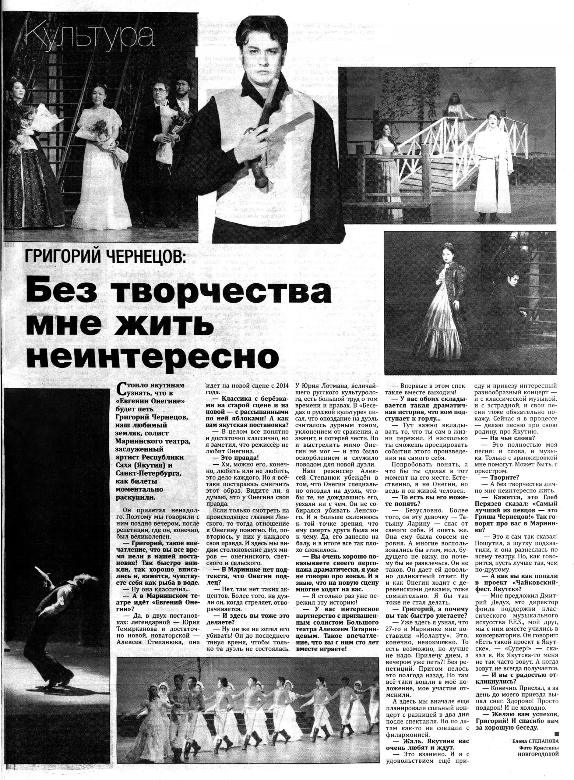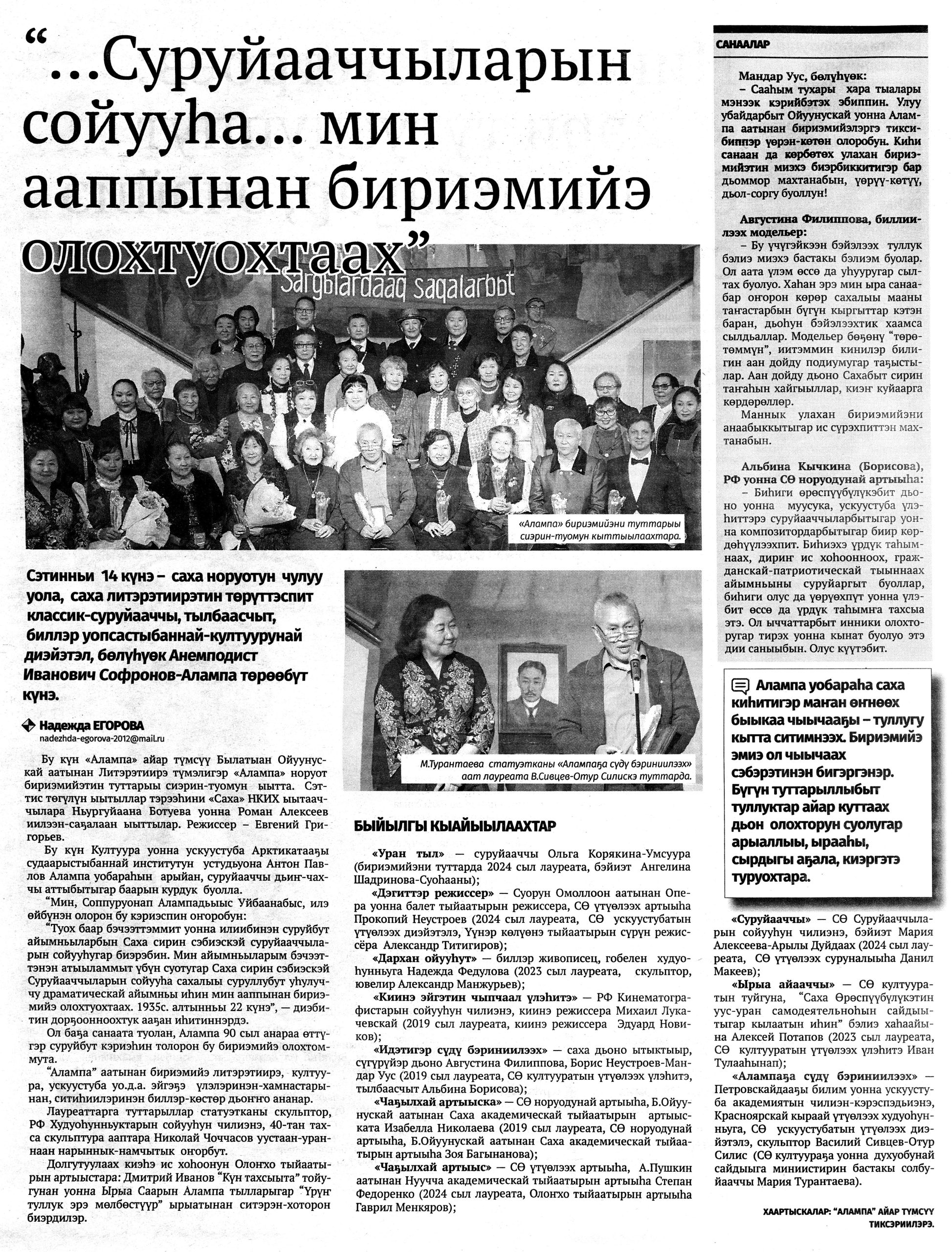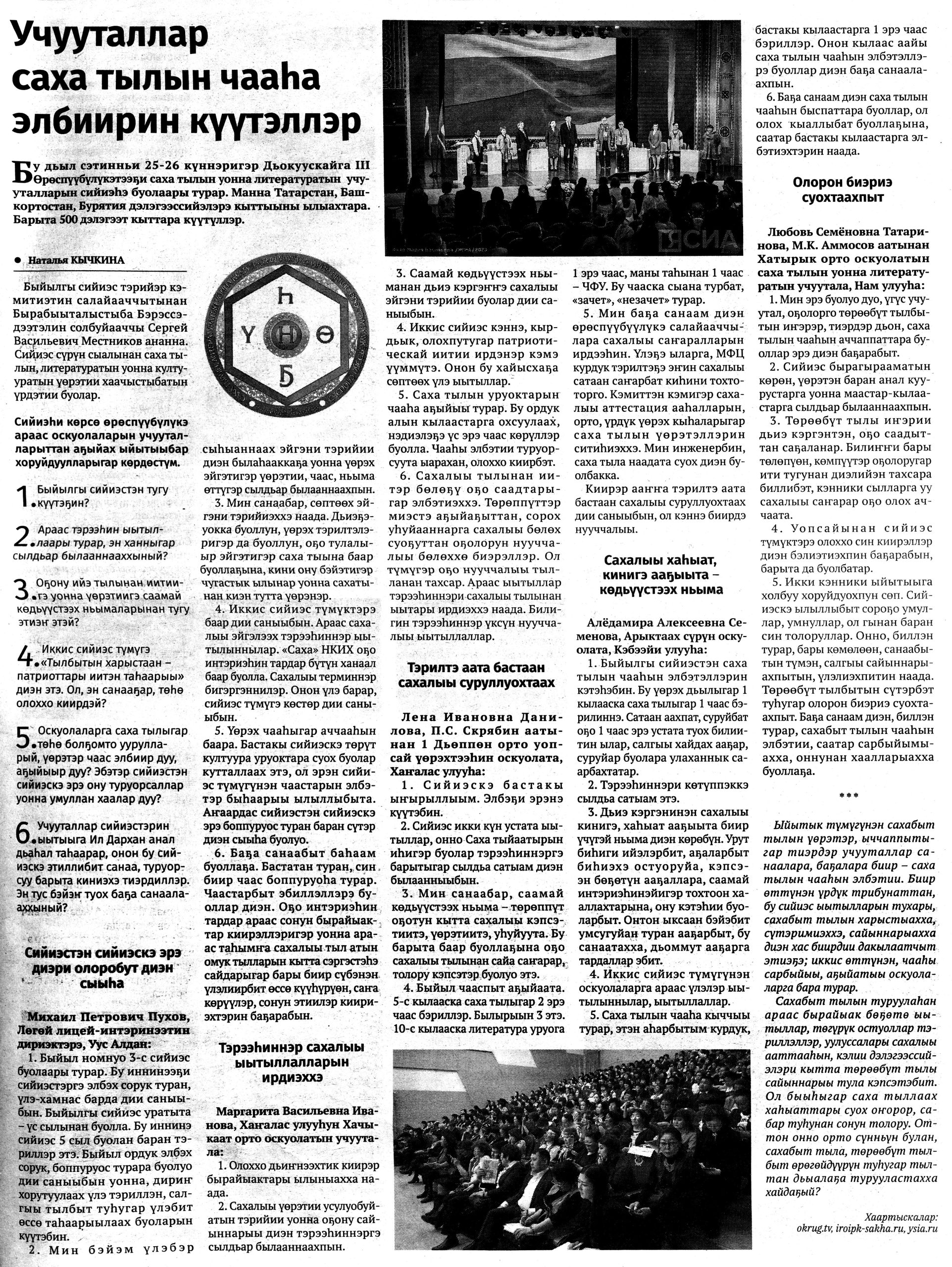 Гид электронных СМИ г. Якутска сформирован на основе мониторинга новостей культуры за неделю. Источники: ysia.ru, news.ykt.ru, yk24.ru, sakhalife.ru, yakutia.info, aartyk.ru и др.