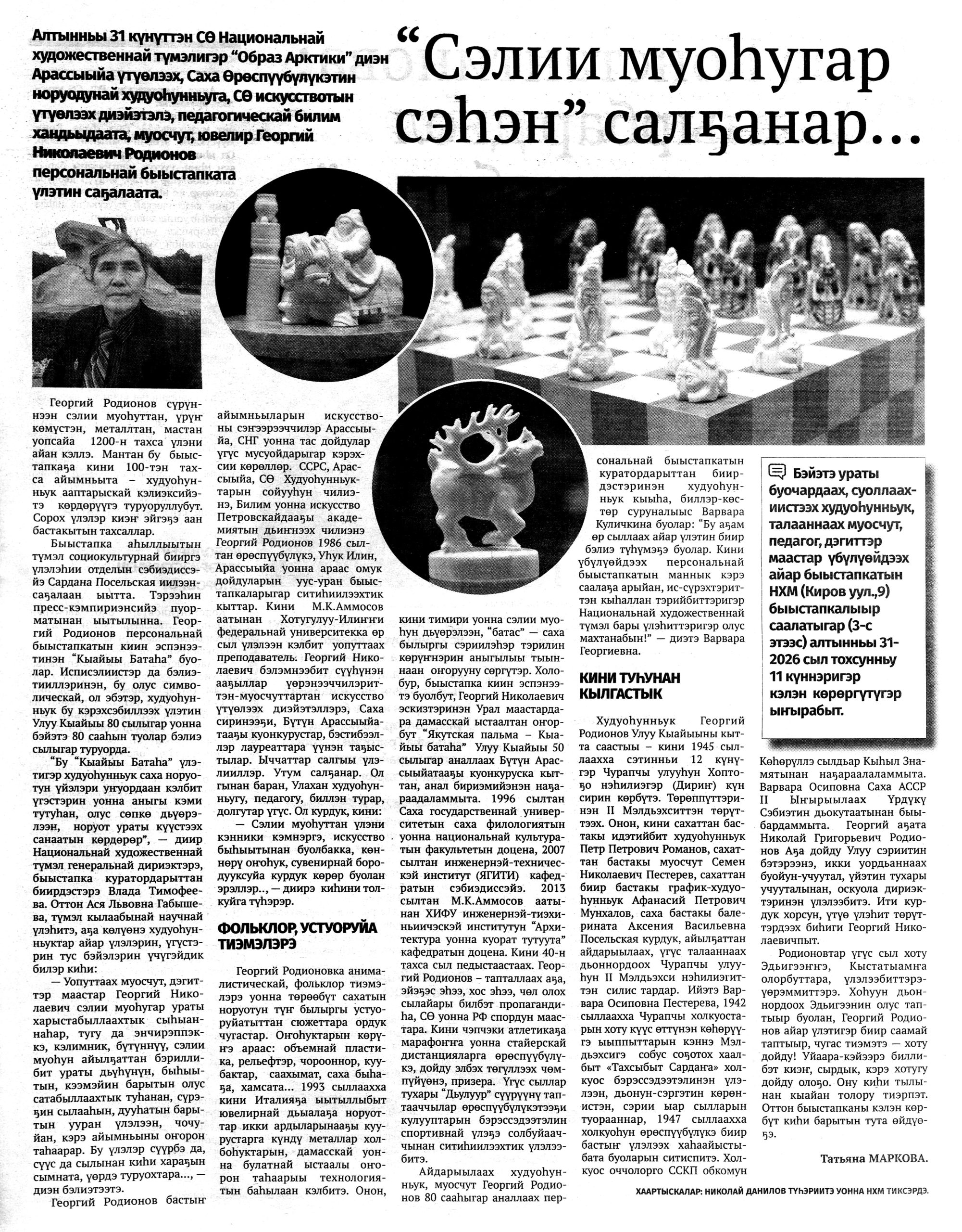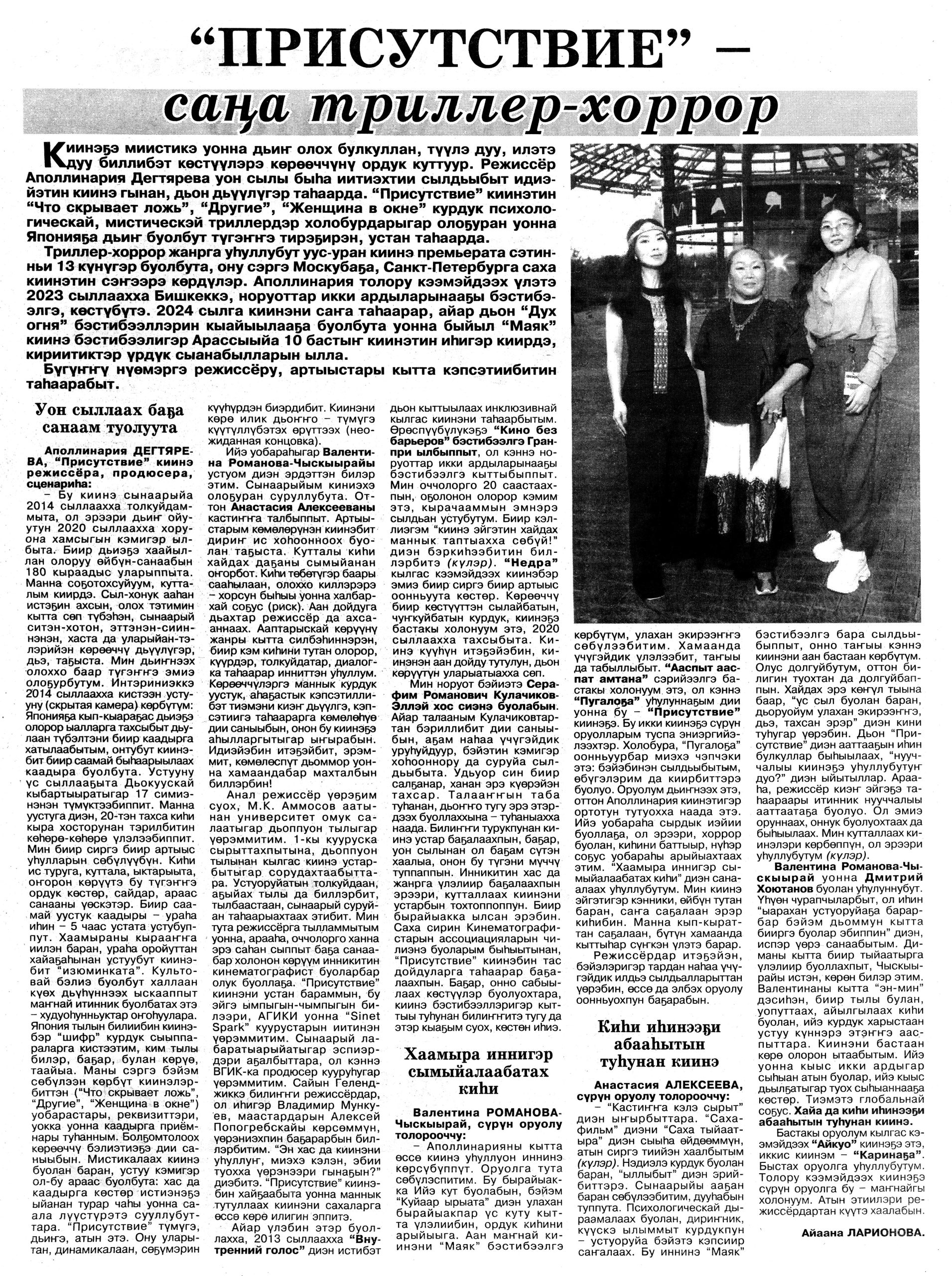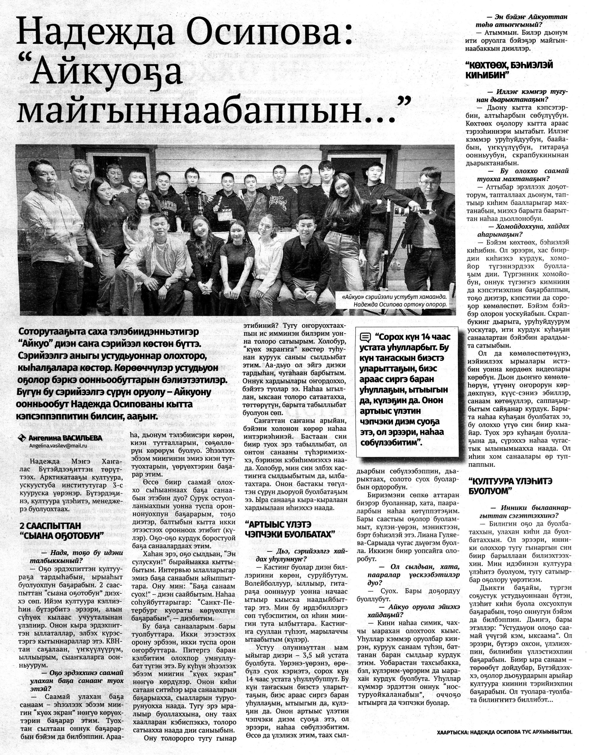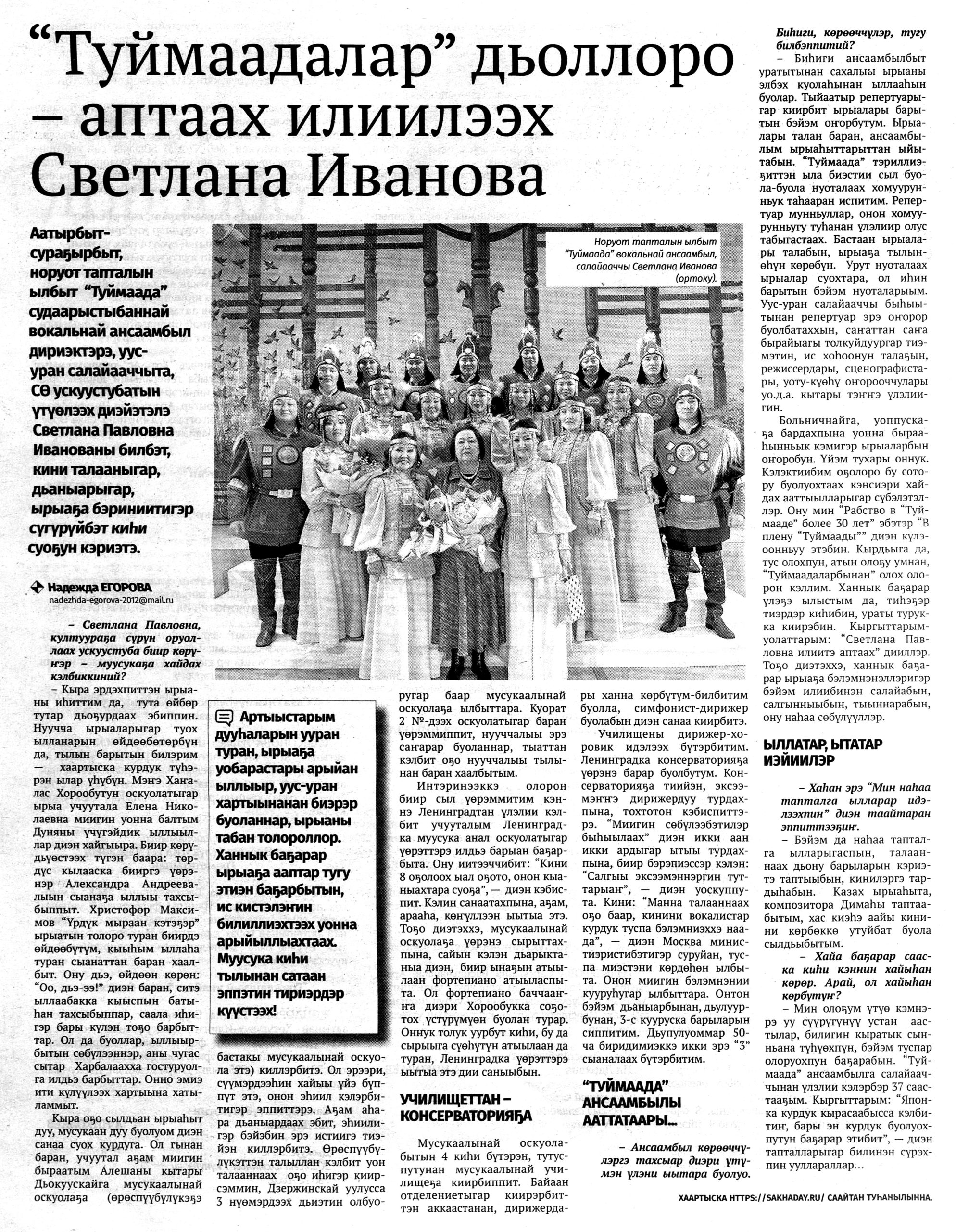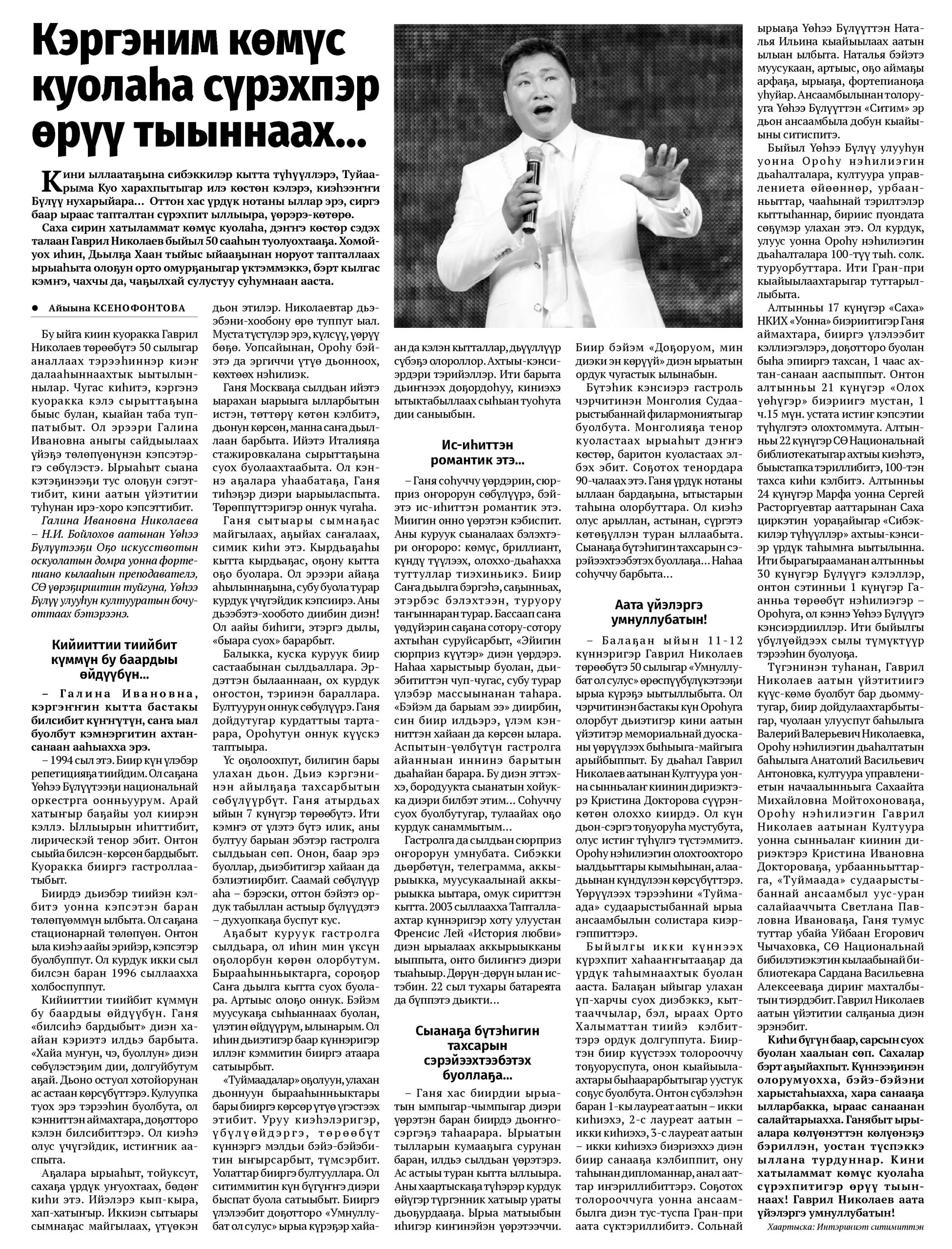 Гид электронных СМИ г. Якутска сформирован на основе мониторинга новостей культуры за неделю. Источники: ysia.ru, news.ykt.ru, yk24.ru, sakhalife.ru, yakutia.info, aartyk.ru и др.