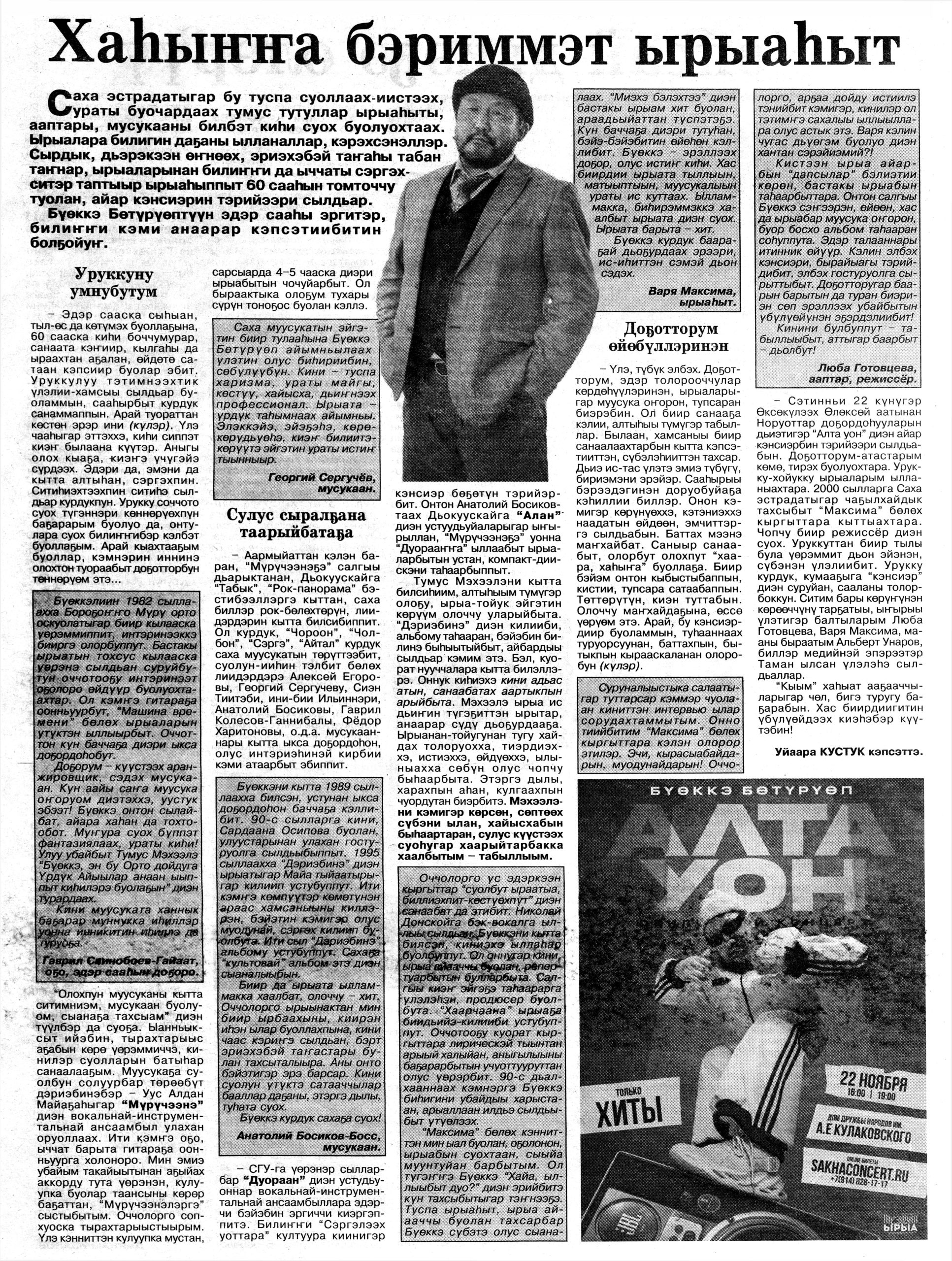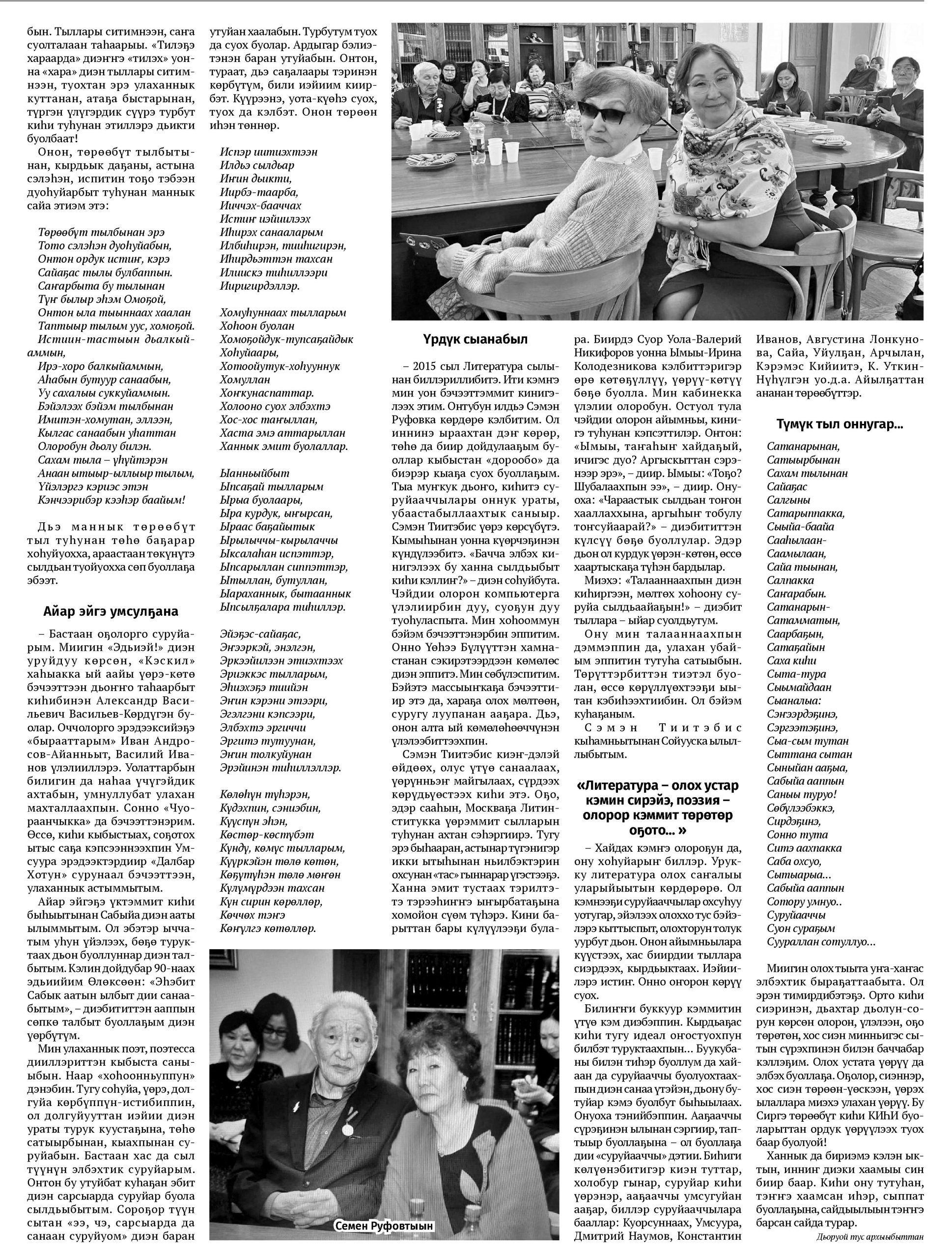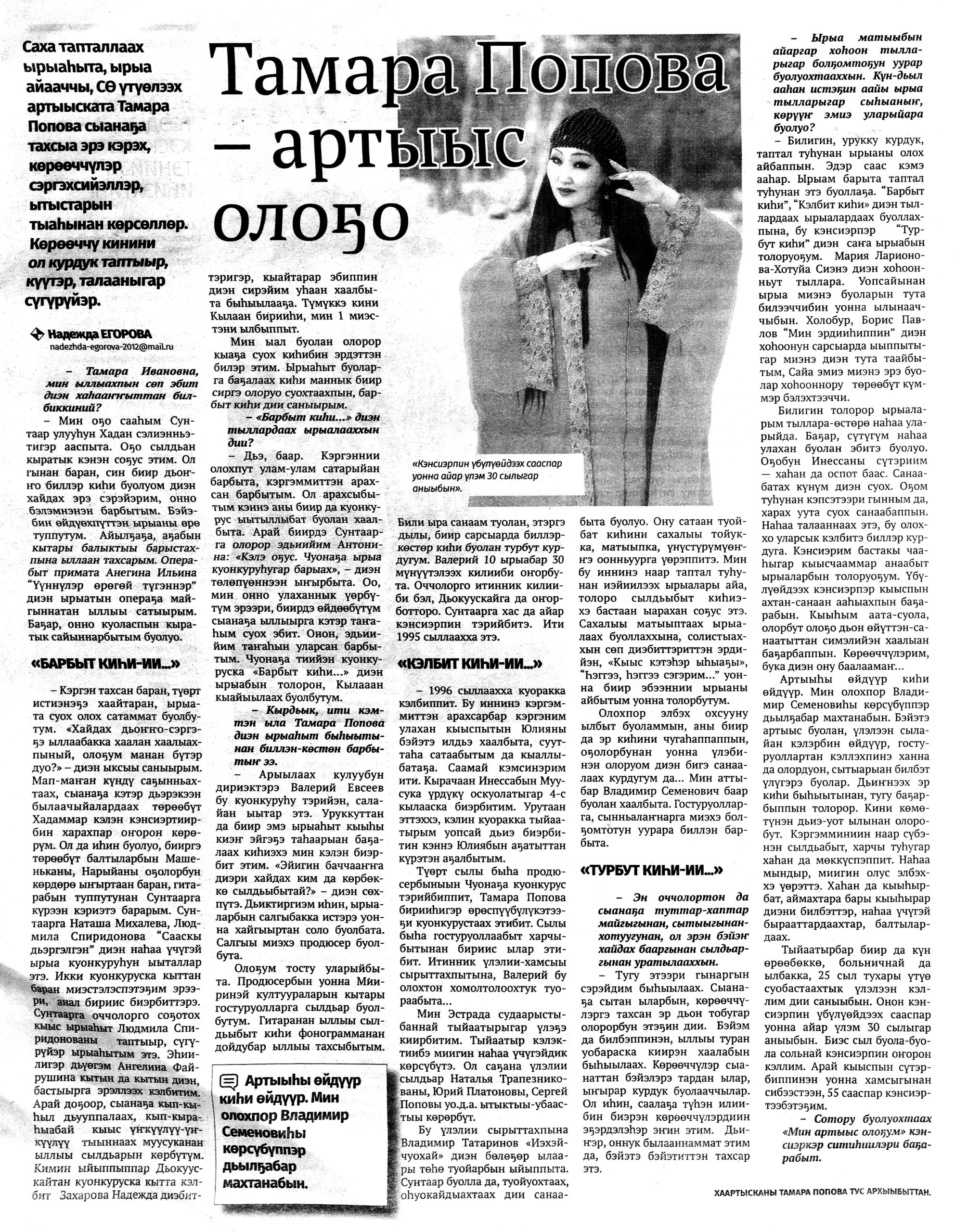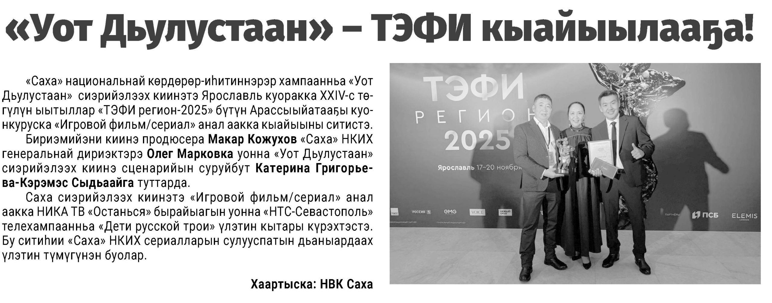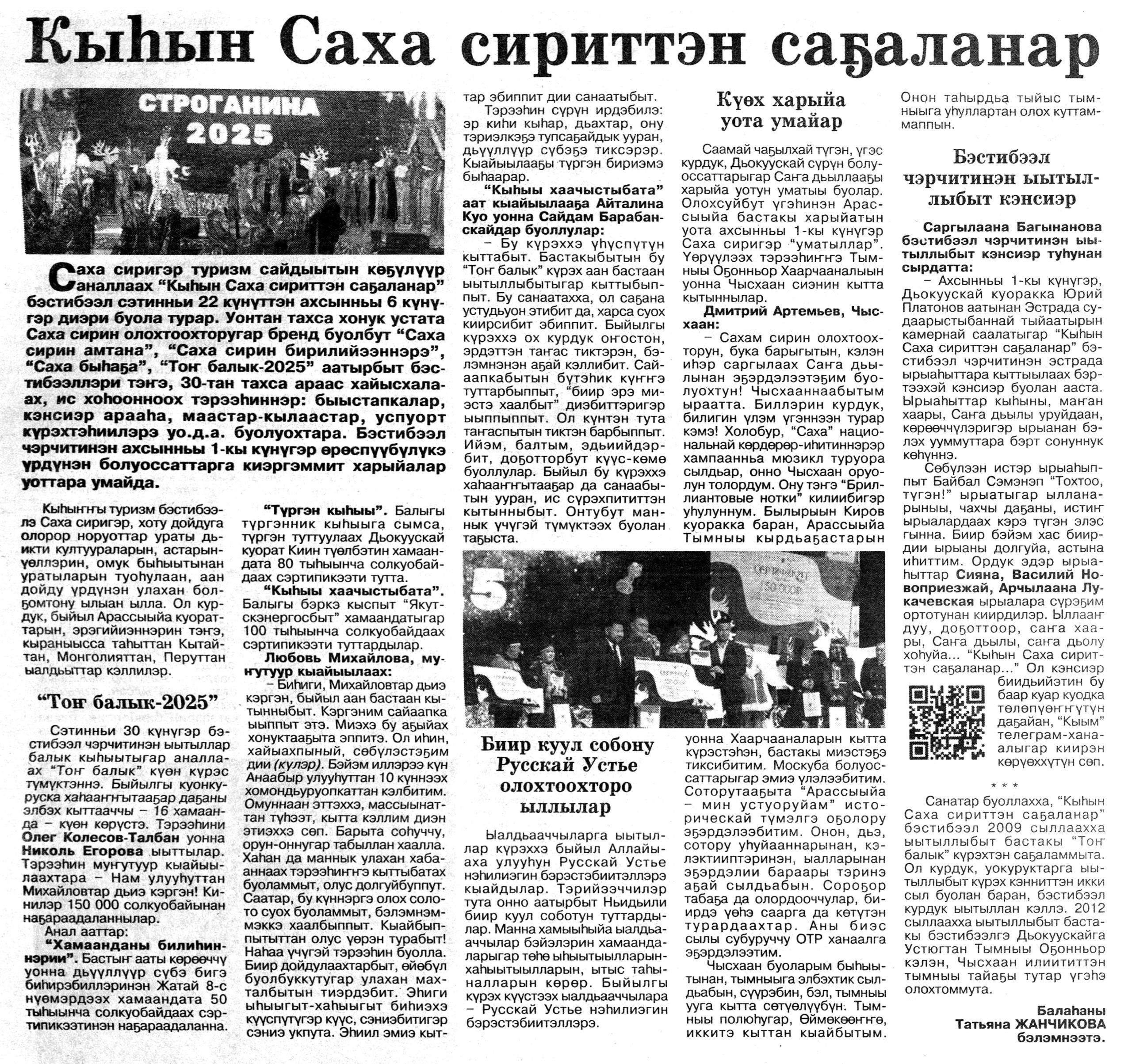 Гид электронных СМИ г. Якутска сформирован на основе мониторинга новостей культуры за неделю. Источники: ysia.ru, news.ykt.ru, yk24.ru, sakhalife.ru, yakutia.info, aartyk.ru и др.