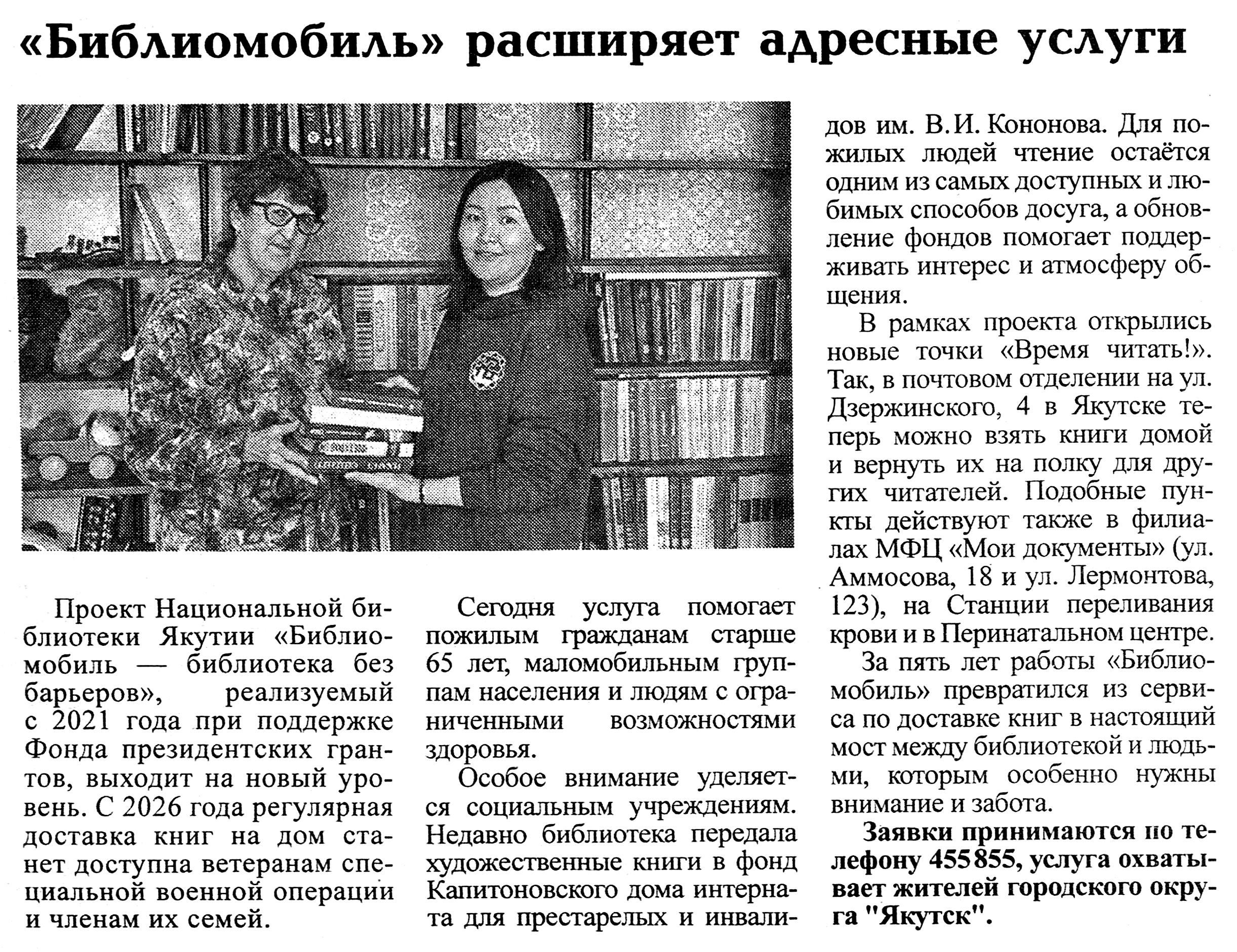 Краеведческая библиотека-филиал №1 имени В.Г. Белинского центральной библиотечной системы Якутска и районная центральная библиотека Анабарской межпоселенческой центральной библиотечной системы прошли конкурсный отбор в проект «Гений места». Имена победителей — 149 государственных и муниципальных библиотек из 62 регионов — объявили министерство культуры России и Российская государственная библиотека.