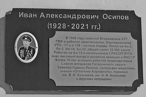 Иван Александрович Осипов родился 20 января 1928 г. в деревне Займище Кутузовского района Куйбышевской области в семье колхозников. В 1946 г. поступил в Егорьевское авиационно-техническое училище по специальности авиатехник эксплуатации самолетов. После окончания учебы, в 1948 г. приехал в Якутию, его определили в 140 ОАО. В 1956 г. переучивается на бортмеханика самолета Ан-2 и перевелся в аварийно-спасательную эскадрилью УТО-17. В 1962 г. переучился на Ил-14, до 1965 года работал бортмехаником в 139-м летном отряде.