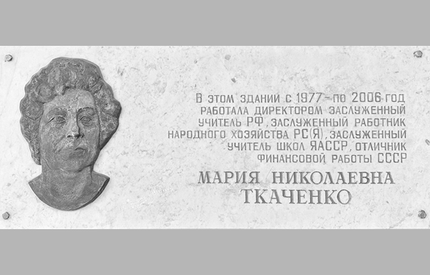 В 2010 г. в здании учебного корпуса Якутского финансово-экономического колледжа имени И. И. Фадеева по адресу ул. Ойунского, 24 была установлена мемориальная доска Ткаченко М.Н. Автор мемориальной доски Пахомов Эдуард Иннокентьевич.
